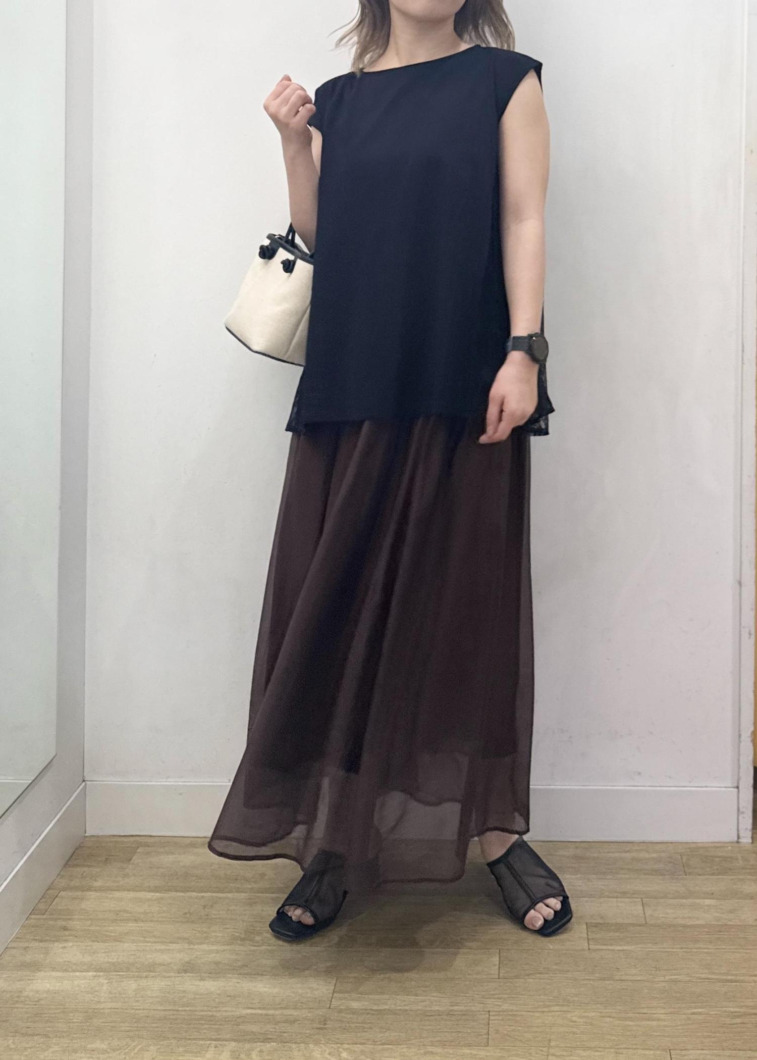 ふわっと軽い素材感で夏にピッタリの涼しげな印象で穿いていただけます。 -