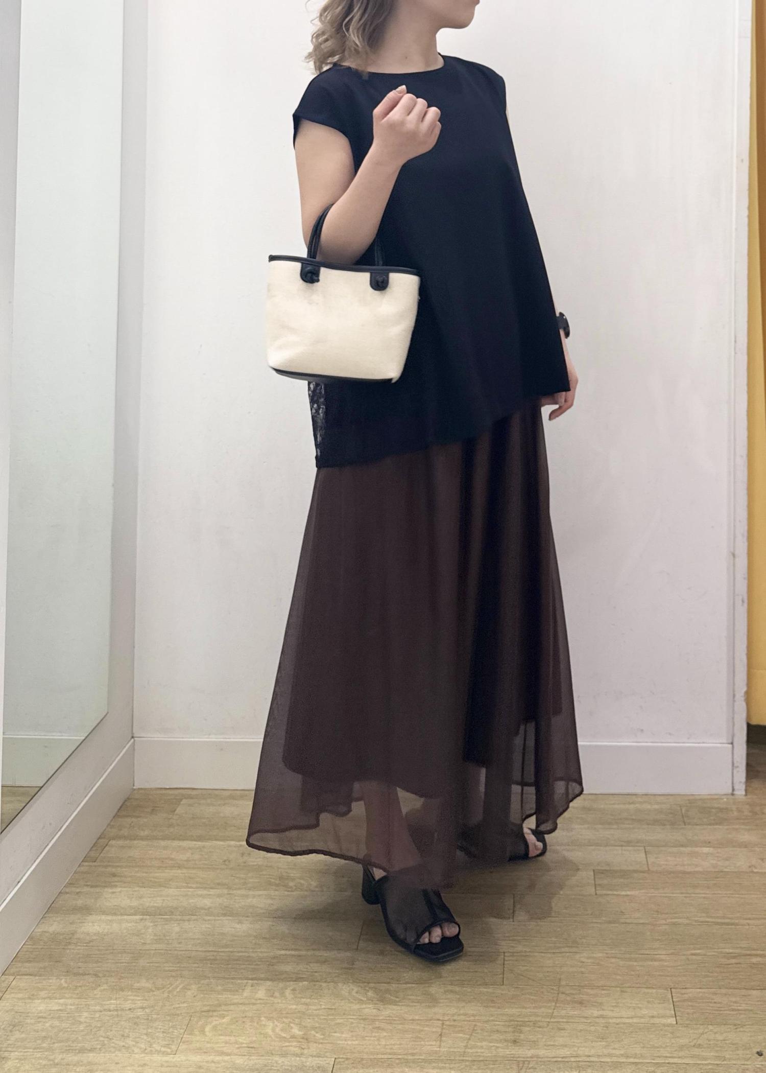 Aラインシルエットでヒップまわりをカバーしながら、レースデザインでちゃんと感のある1枚でオシャレなデザインです。 -