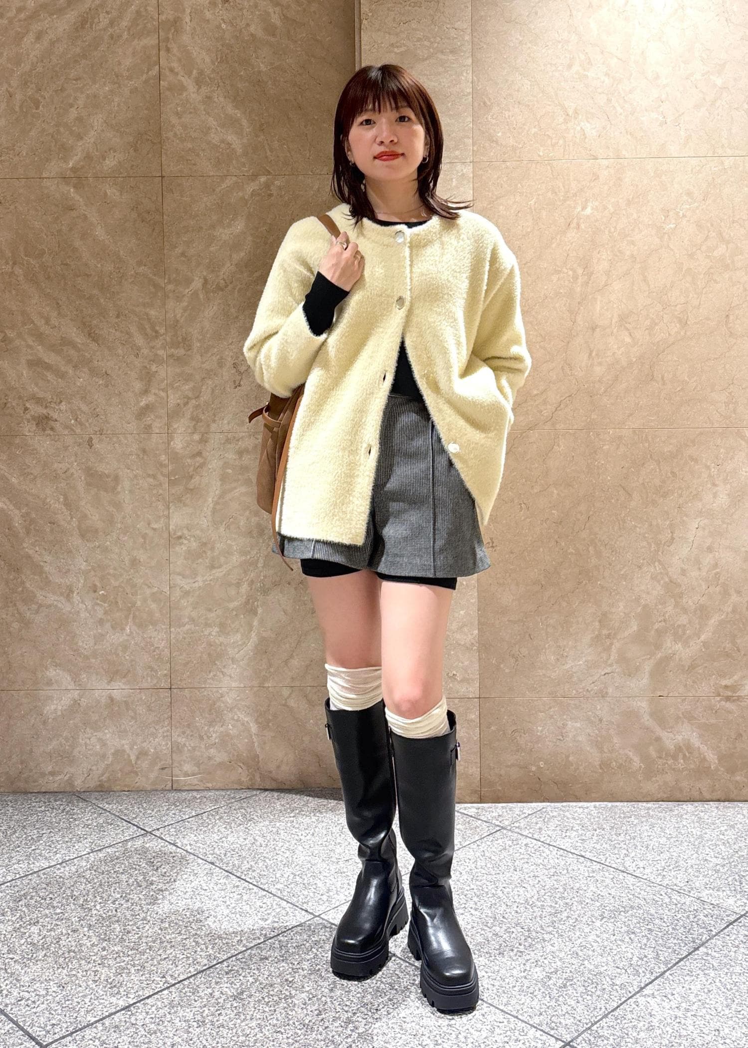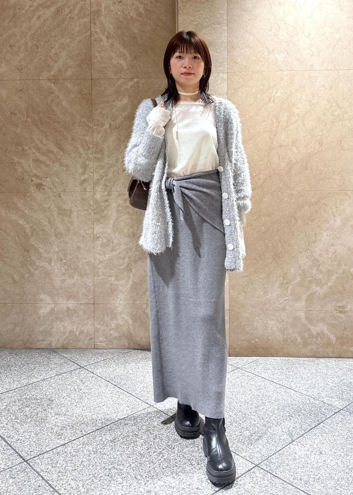 前後差はないですが、裾処理が前身頃がラウンド、後ろ身頃はスクエアになっているので、重ね着したら後ろ側が長く見えました。