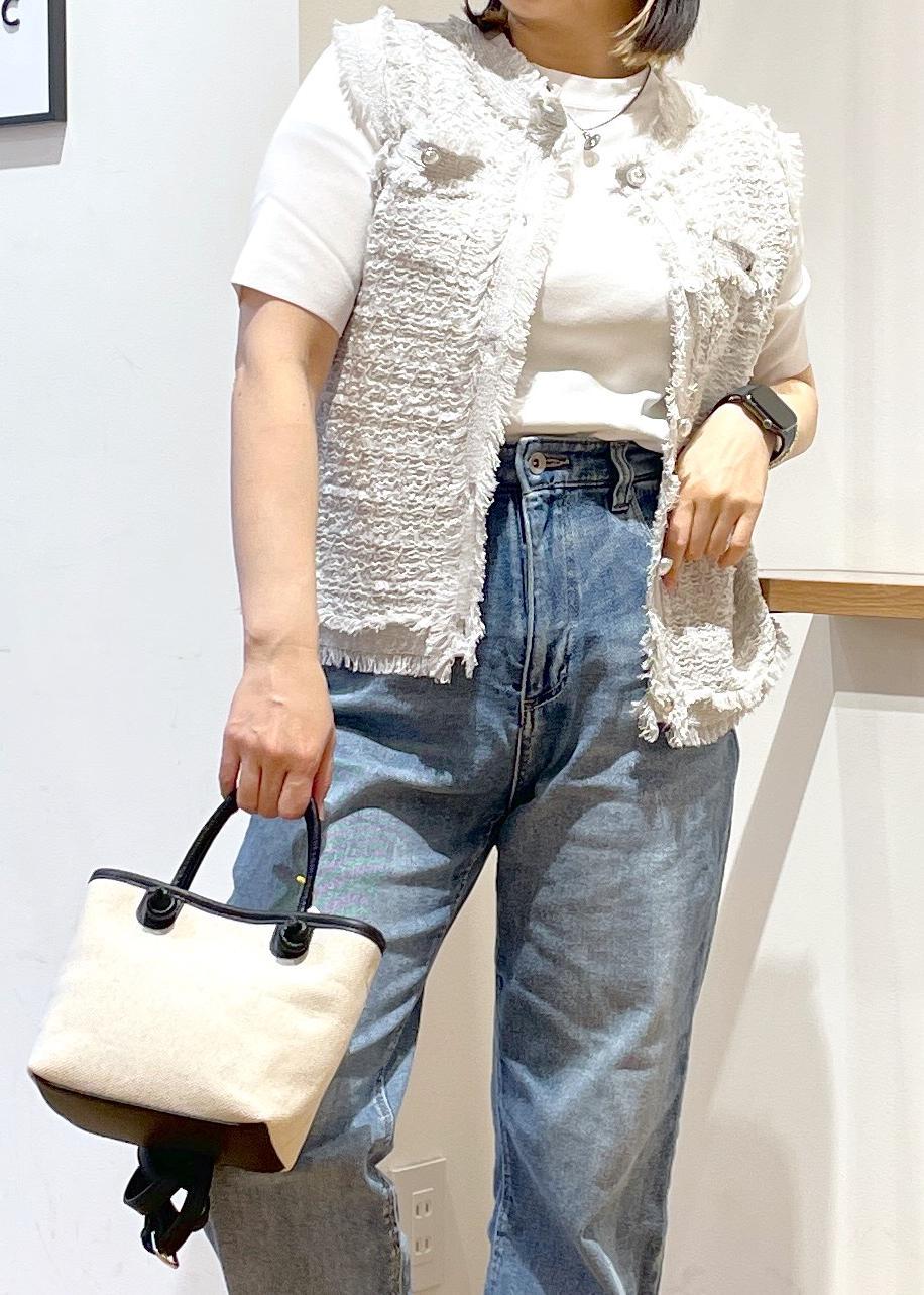 着丈が選べるツイードベストです。柔らかい素材でとっても着心地が良いです。Tシャツ合わせで羽織りとして着用して頂いても可愛いです○