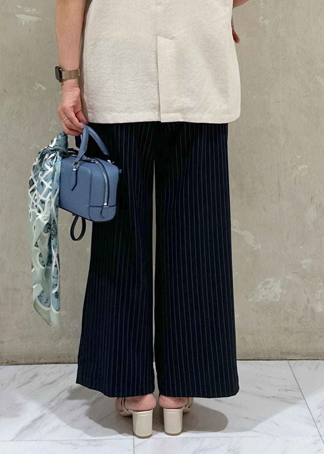 アウトレットVIS【接触冷感/UVケア】ピンストライプリラックスワイドパンツネイビー系 / M¥2,636レビューウエストがゴムで楽ちん、ストレッチ素材で動きやすいのにワークにも使えるラインでした!