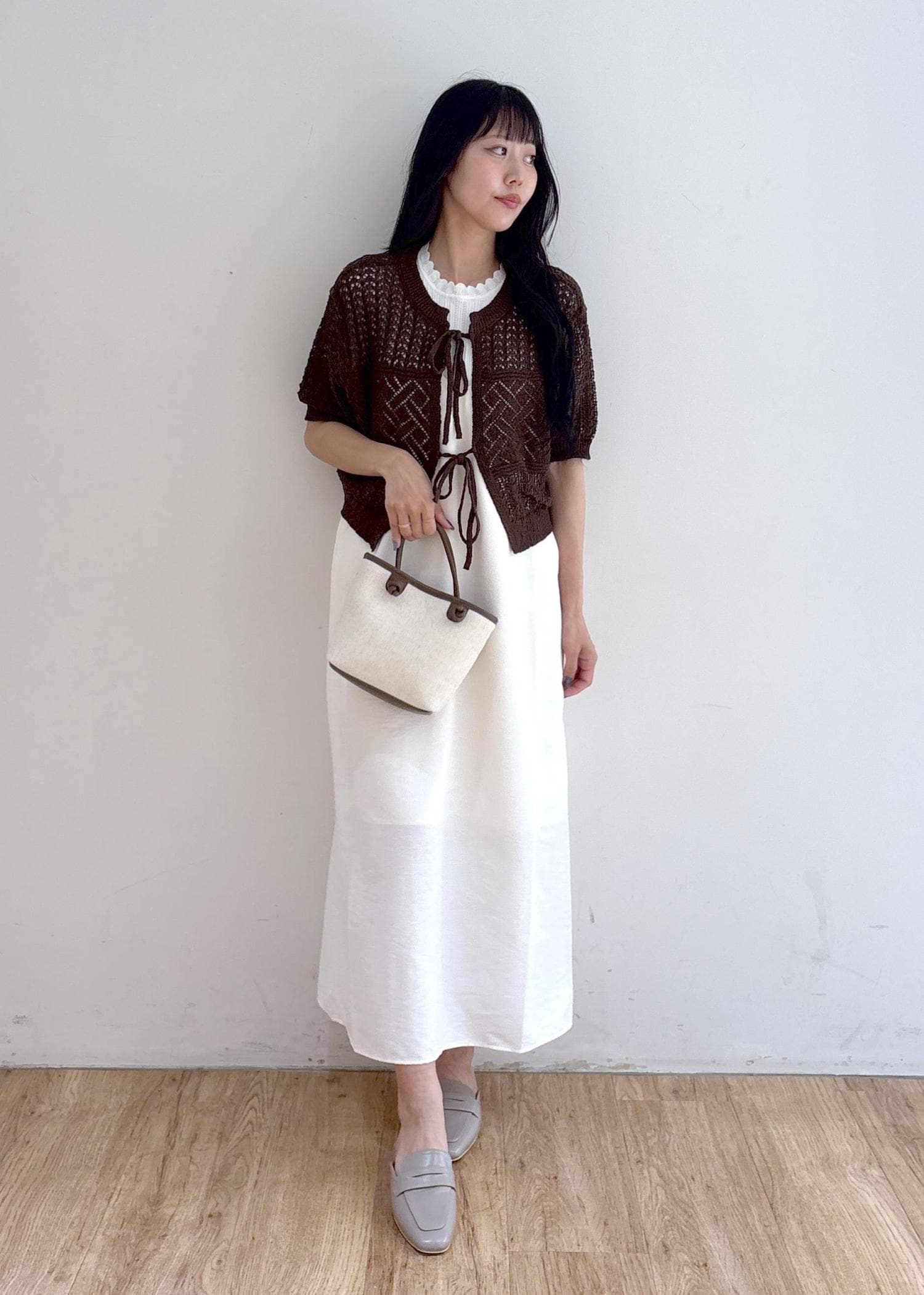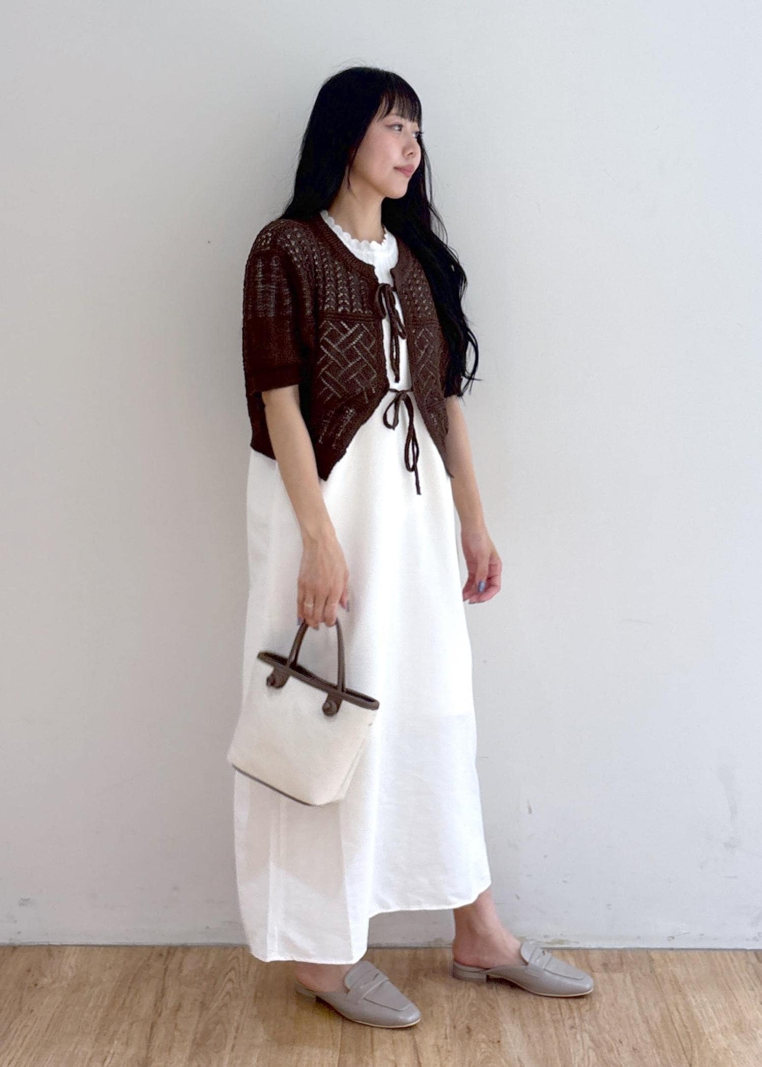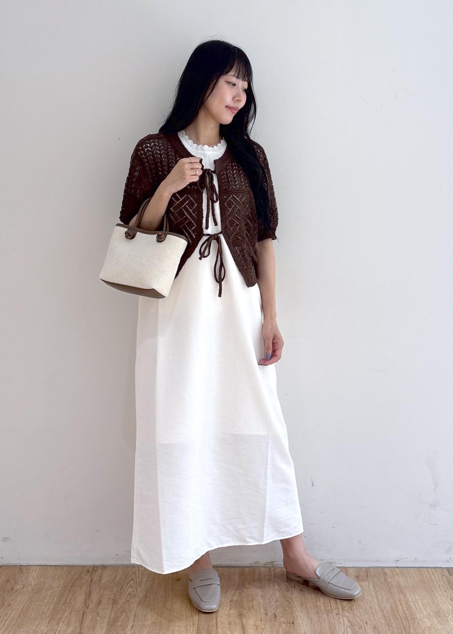 UVケア、遮熱性のあるキャミワンピースと透かし編みニットで涼しげのあるカーディガンを合わせました!