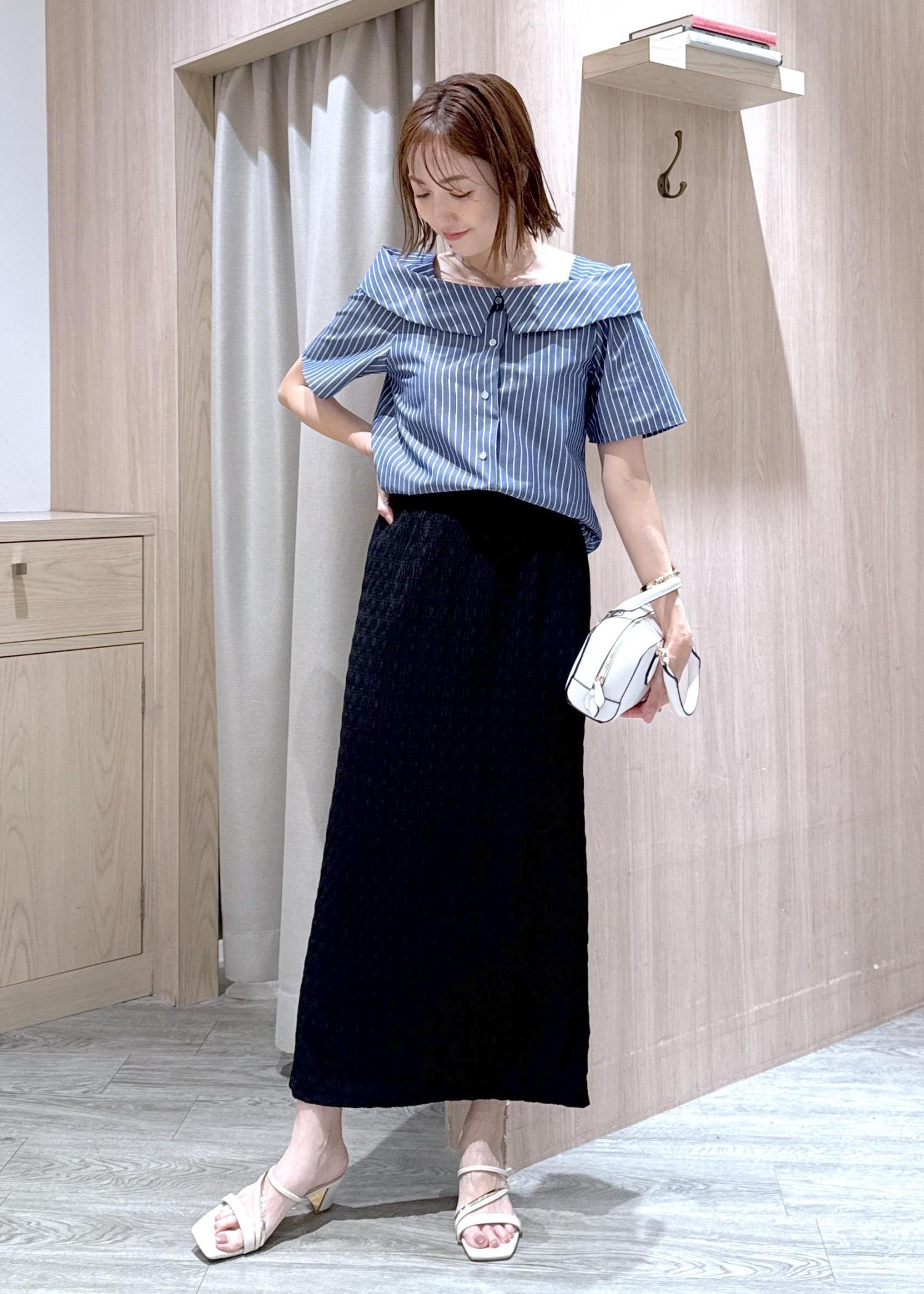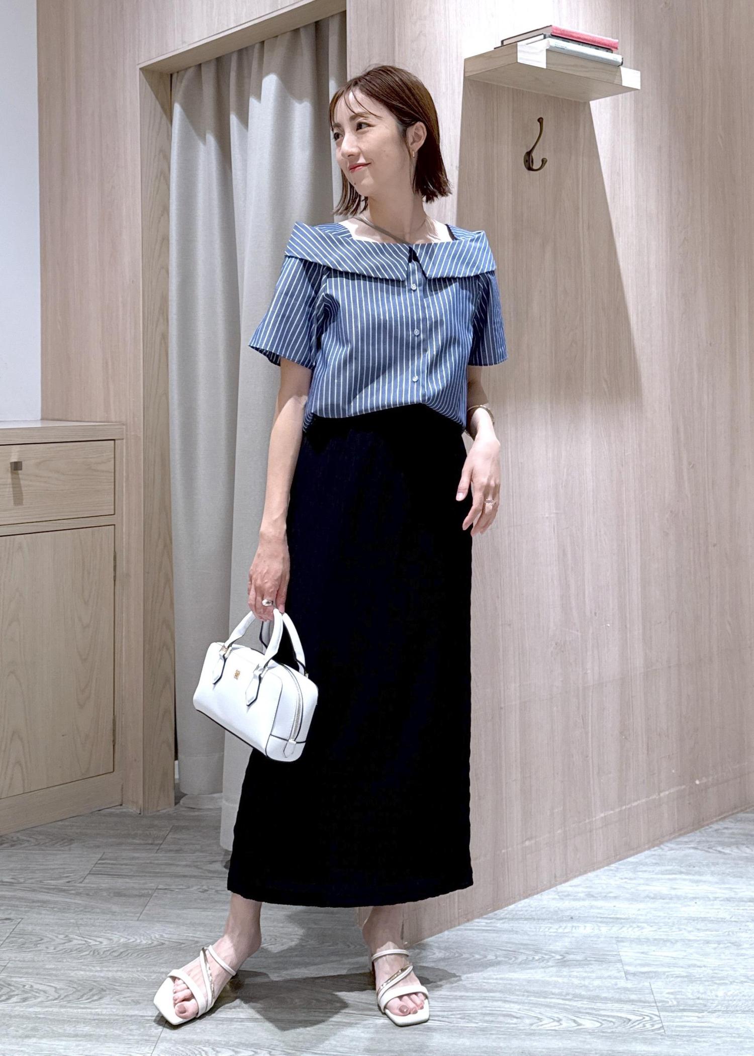 オフショル風のブラウスで、大人のデートスタイルにしてみました♪