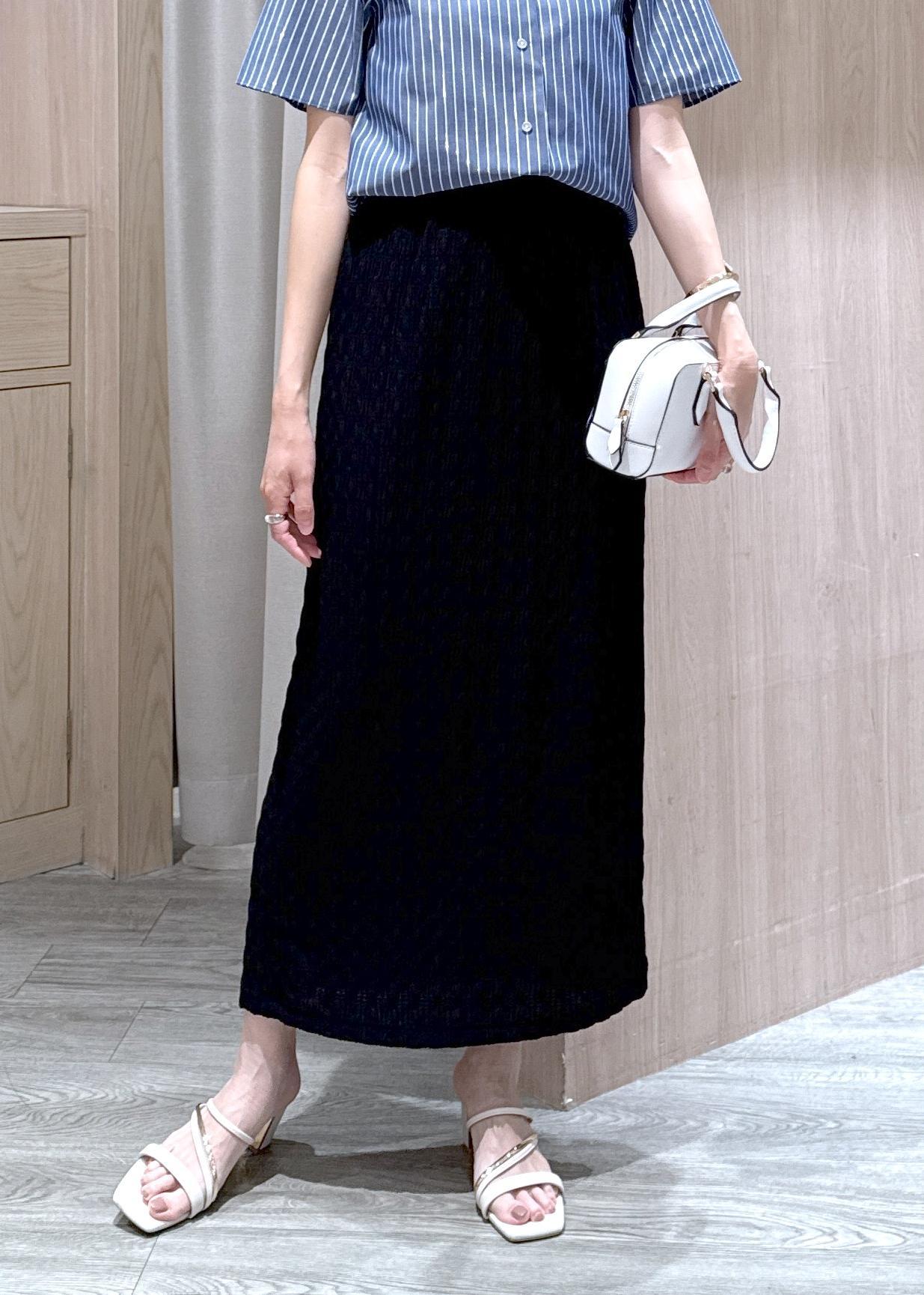 アウトレットVIS【新色追加】【接触冷感】膨れジャガードナロースカートブラック / F¥3,293レビュー身長166センチでくるぶし上の長さでした。