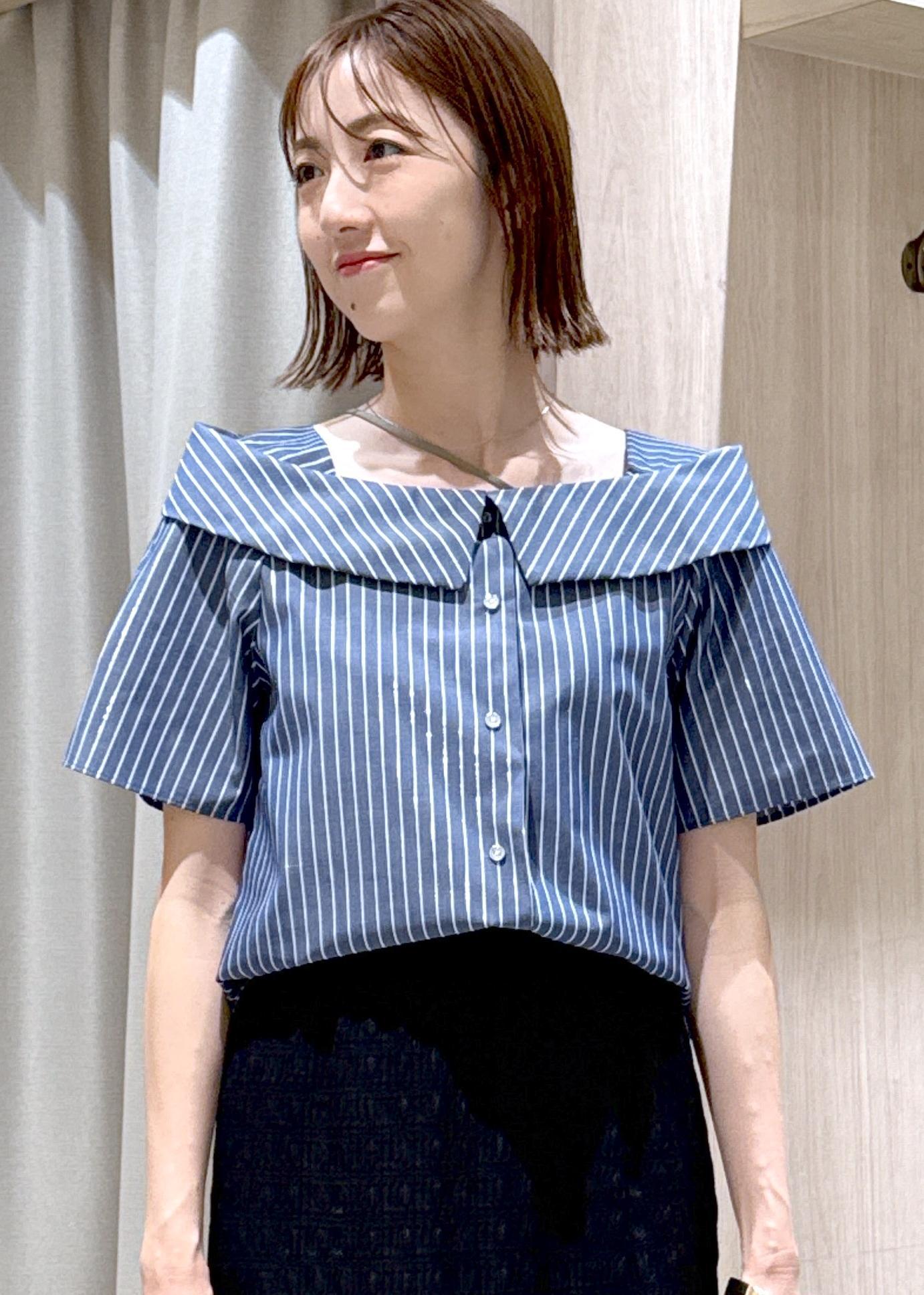 ハリ感のある素材のブラウスでシワになりにくいのも嬉しい◎
