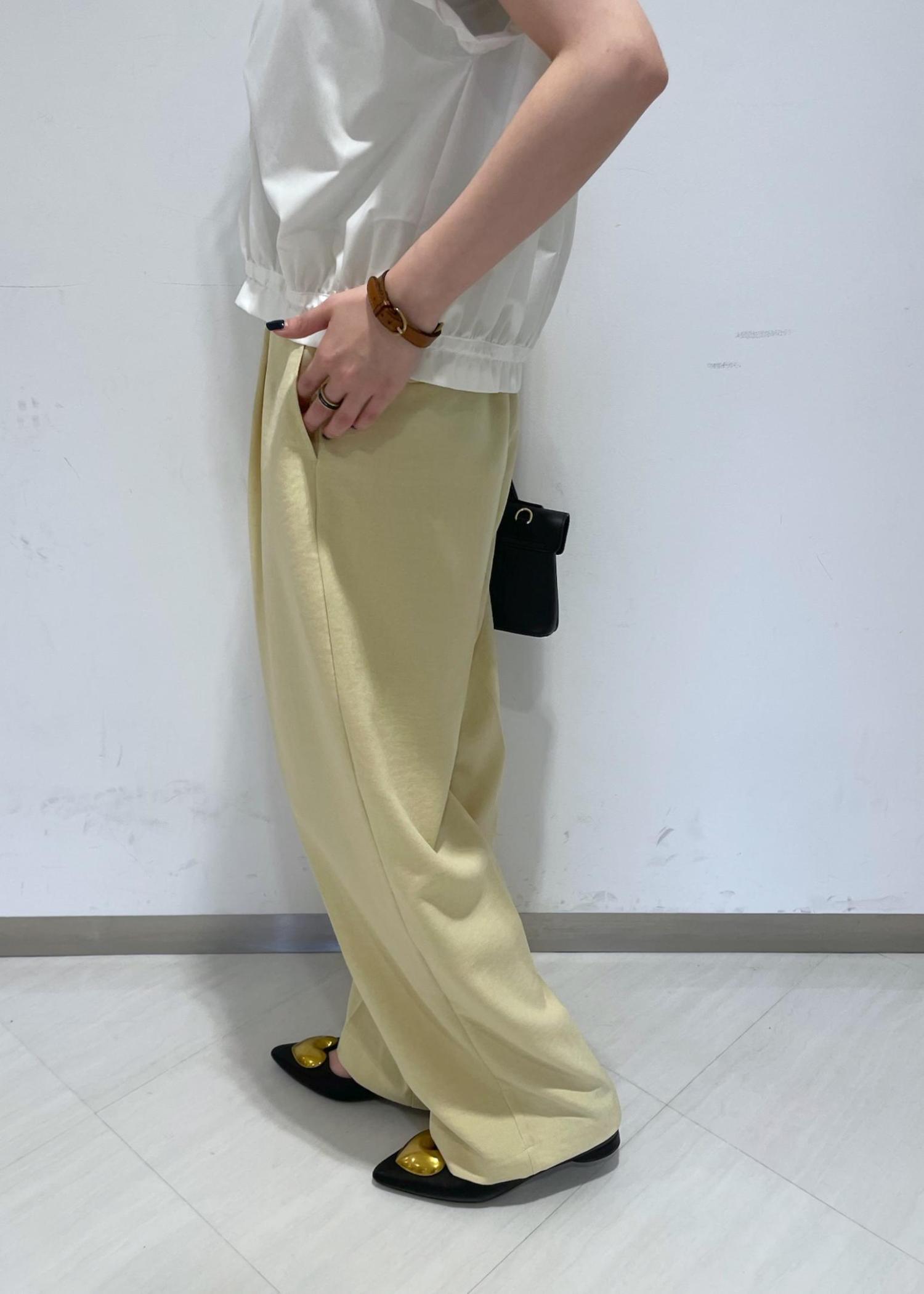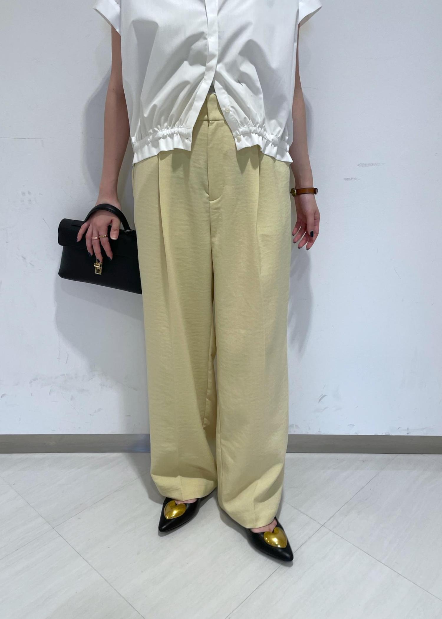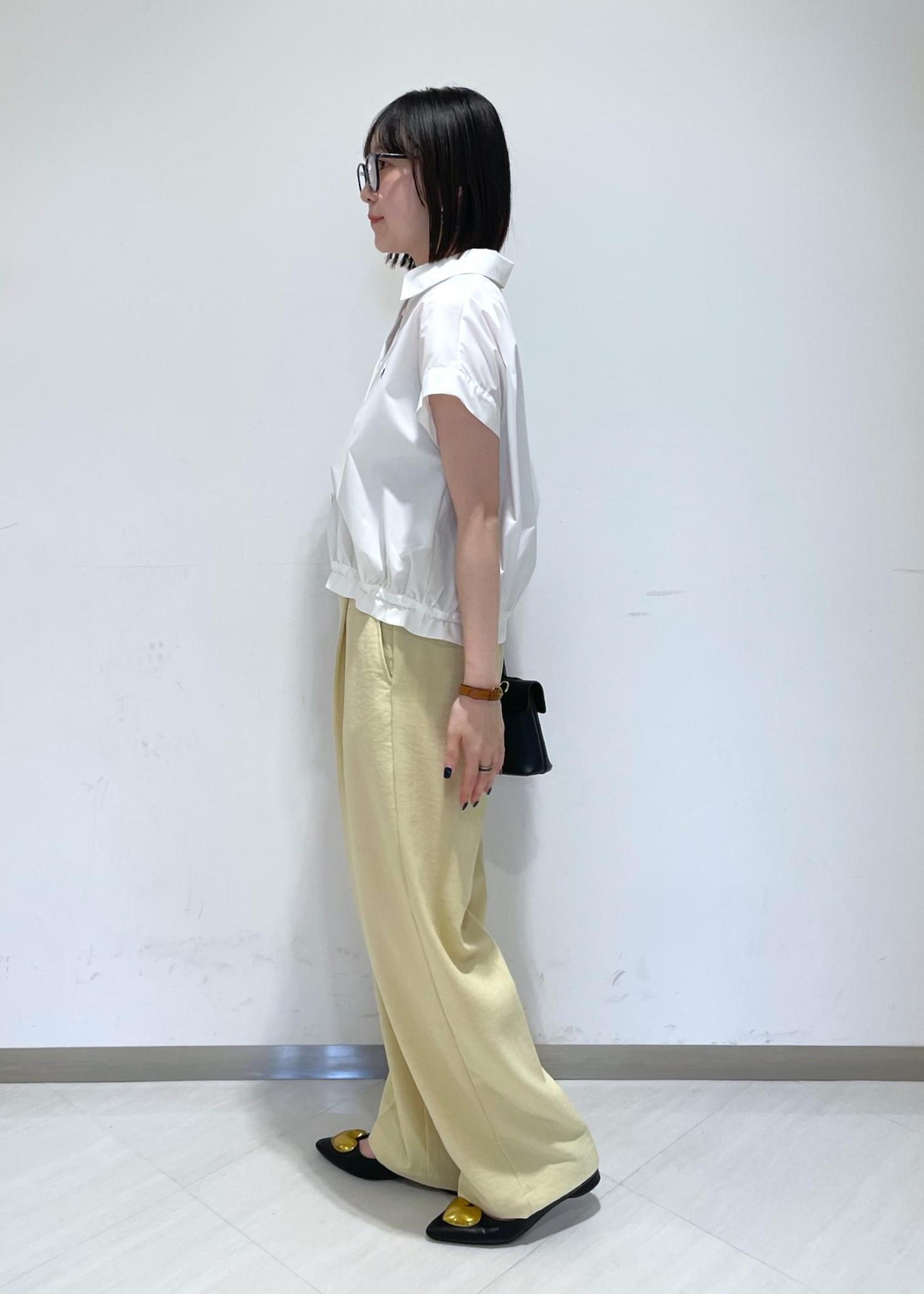 普段フレンチスリーブは二の腕の太さが気になり苦手ですが、このシャツは袖の幅がワイドで肌離れするので逆に細見え効果があり着やすかったです! -