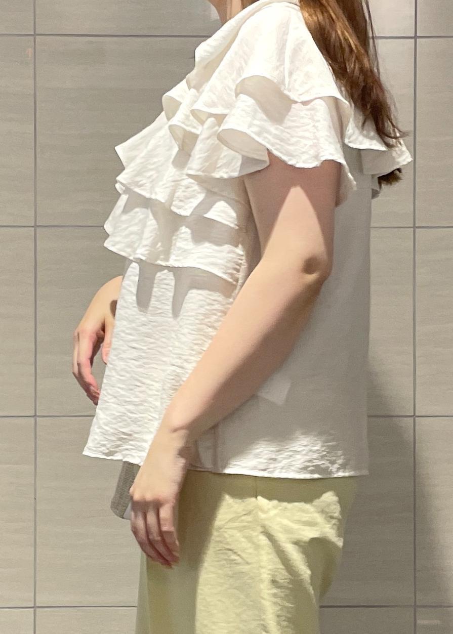 ティアードディティールが体のラインを拾わず気になる二の腕もカバーしてくれます。