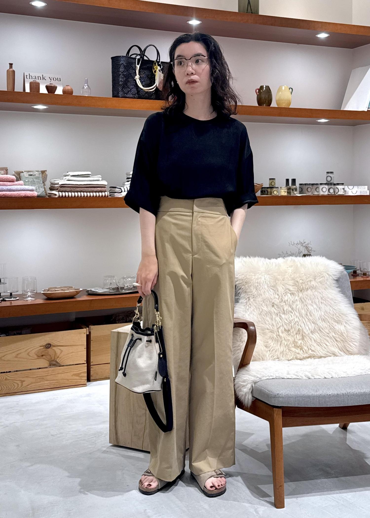 シンプルなスタイリングもとろみ素材にするだけで今年らしくなります。