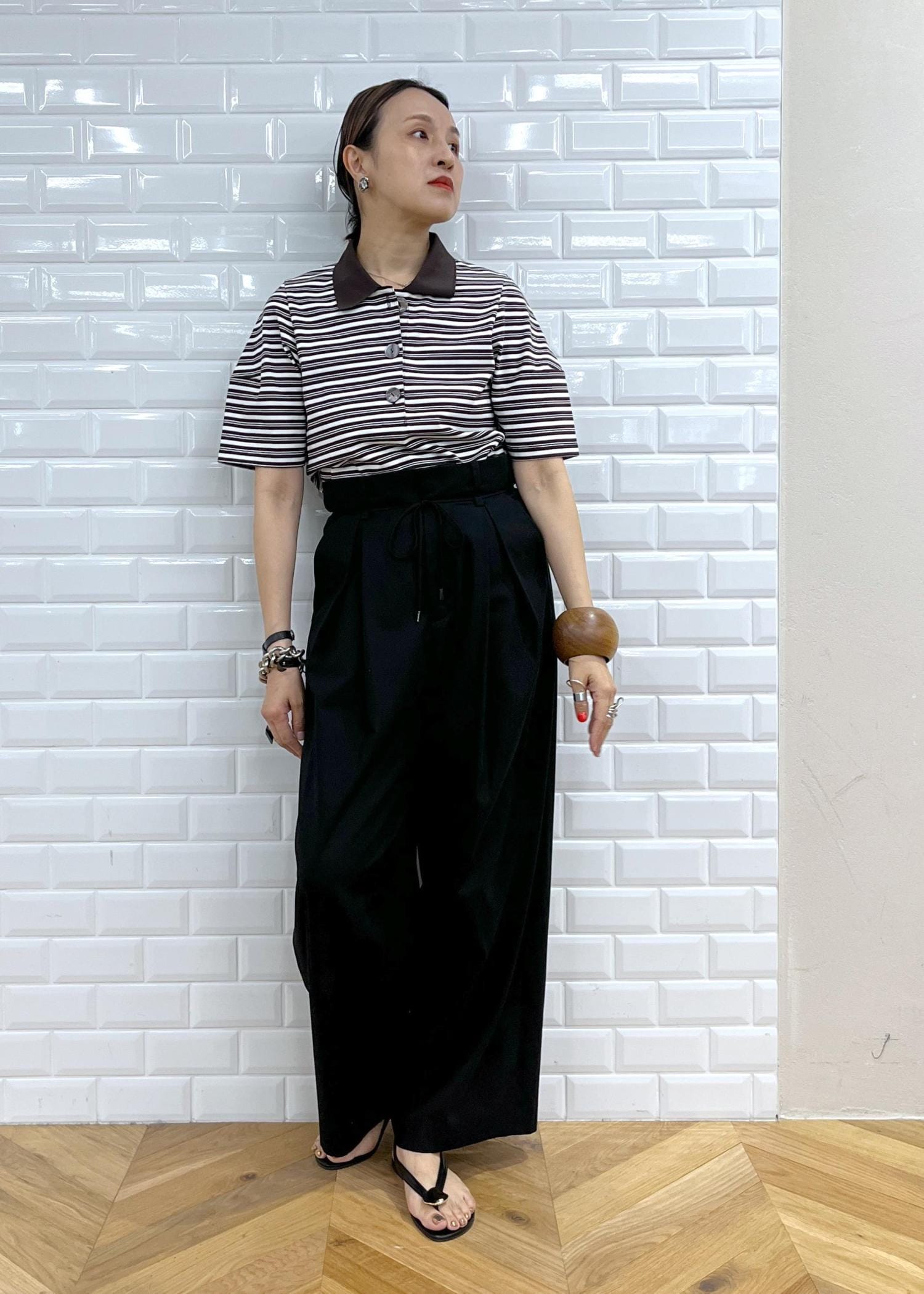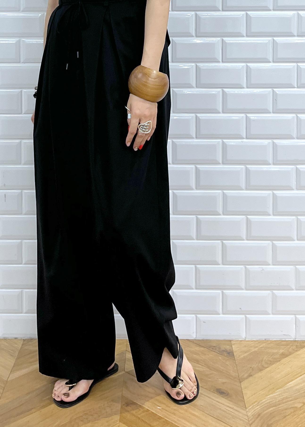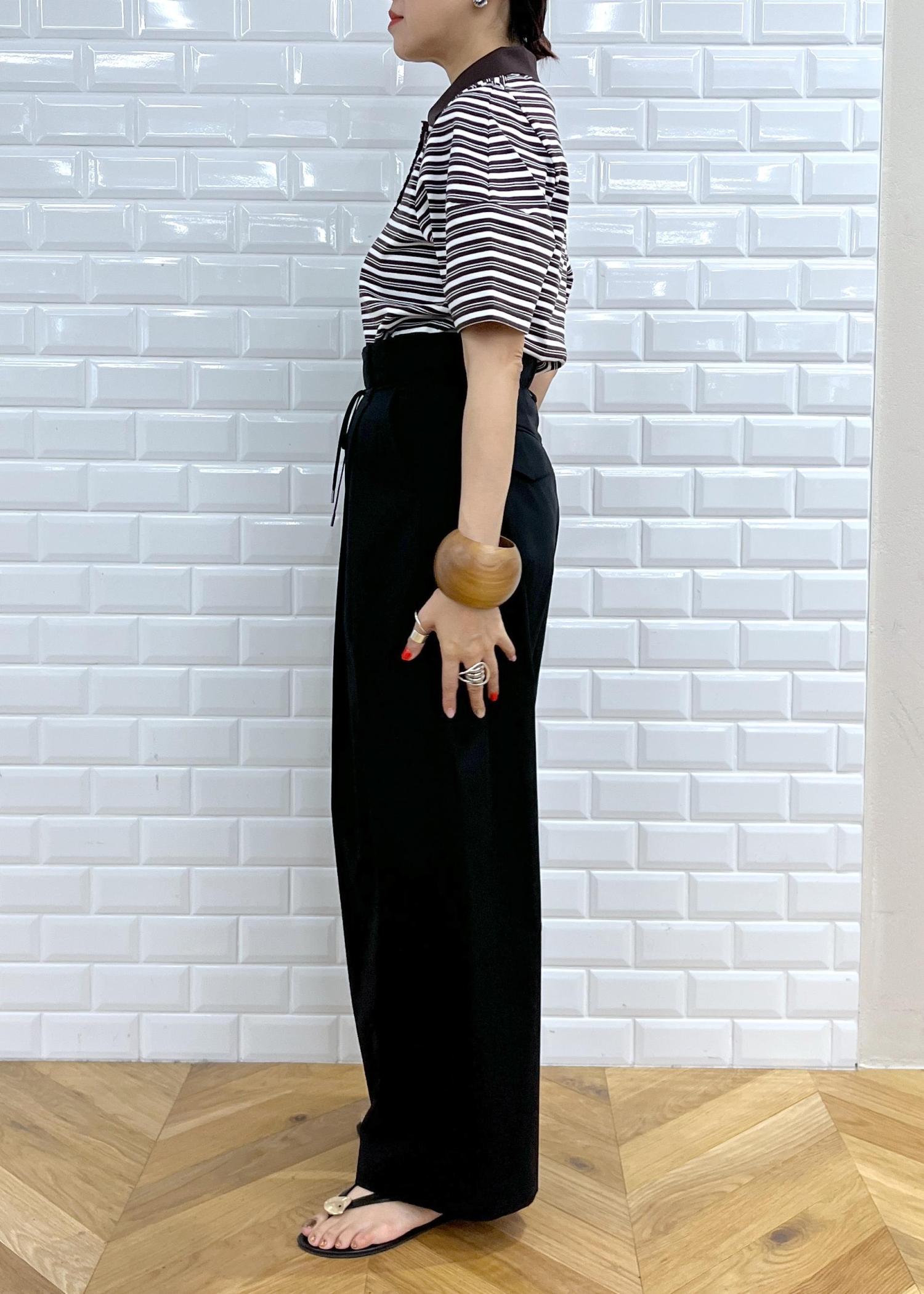 ADAM ET ROPÉ FEMMEドロストドカンパンツブラック / 38¥24,200レビュー身長166cmで38サイズ着用。長さもしっかりあります。ウエストは若干大きめですが、共布の紐でぎゅっと絞って着るとまた違ったニュアンスが出て可愛いです。大きめのシルエットなのでトップスはコンパクトなアイテムがオススメ。是非参考にしてみてください。