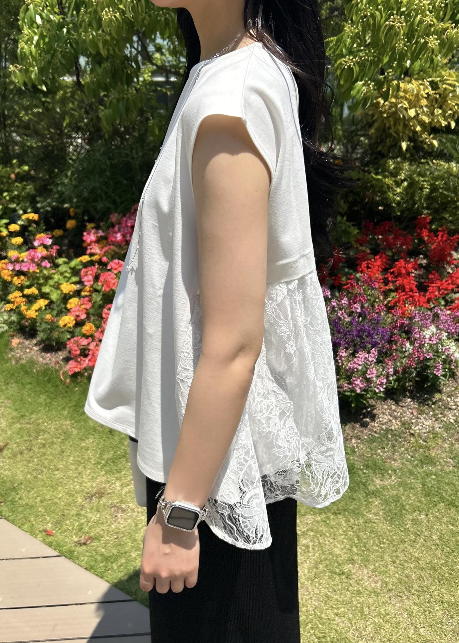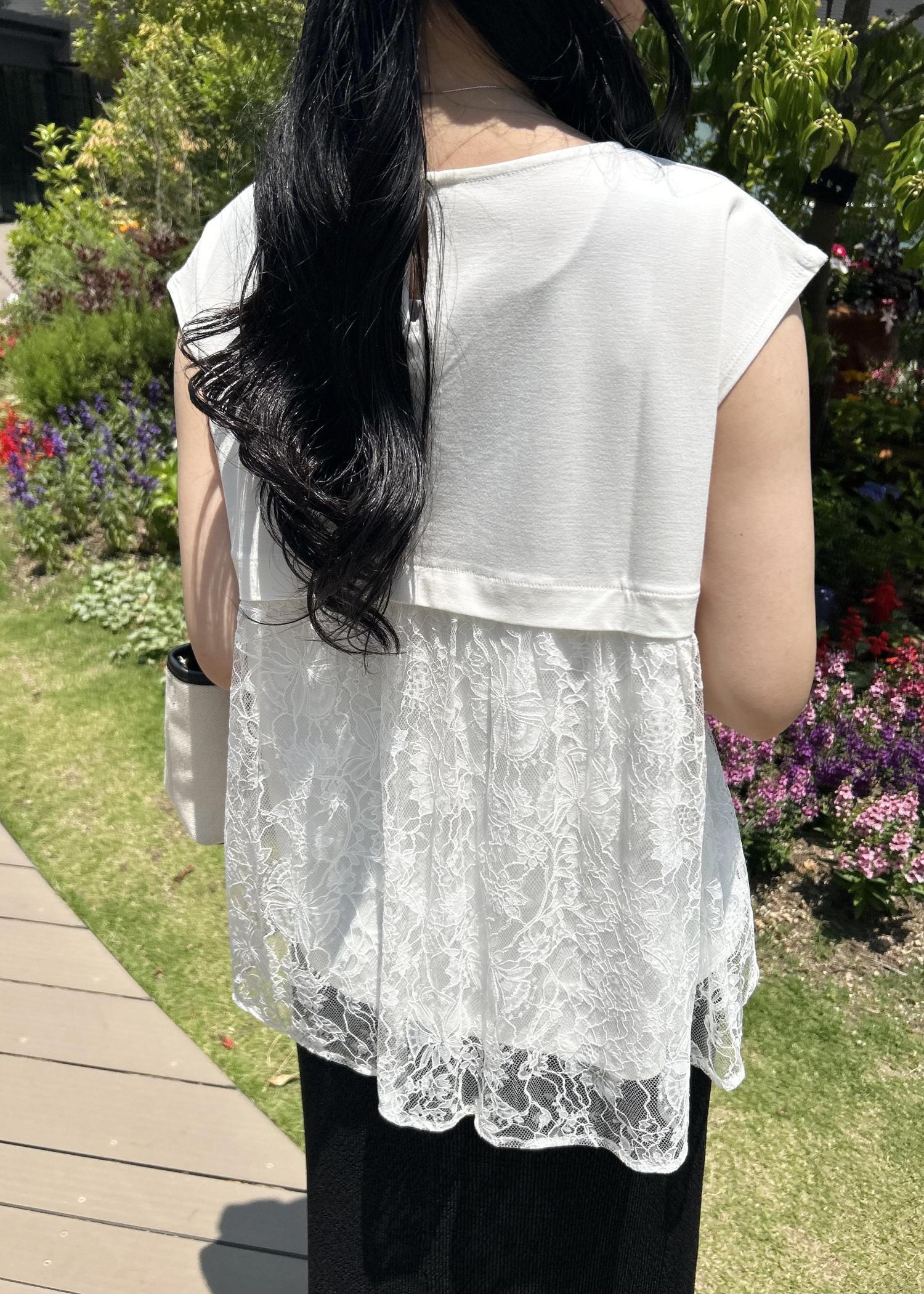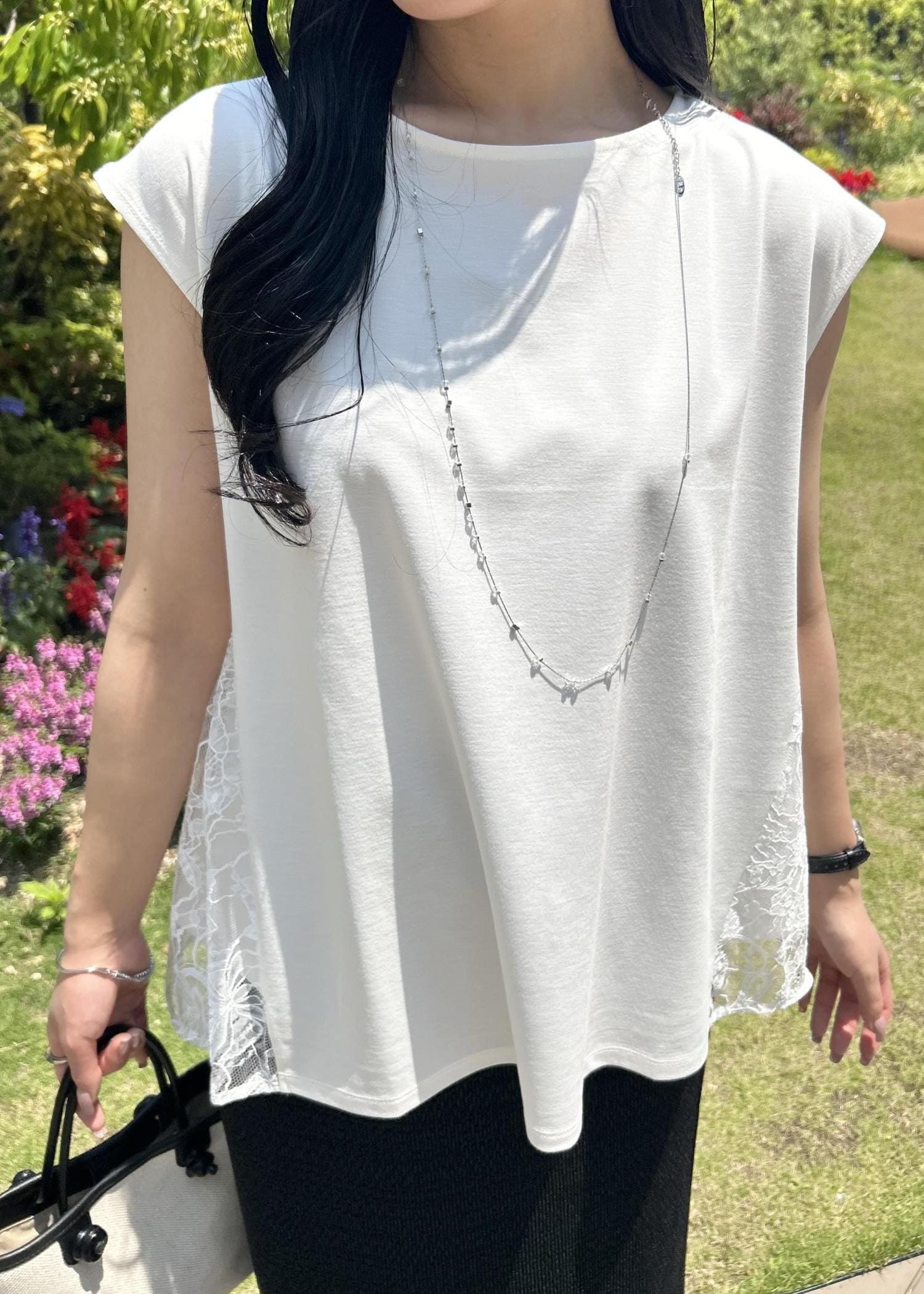 ROPÉ PICNIC【UVカット・接触冷感】レースドッキングカットトップスホワイト / 38¥4,499レビューシンプルなノースリーブカットソー見えますが、