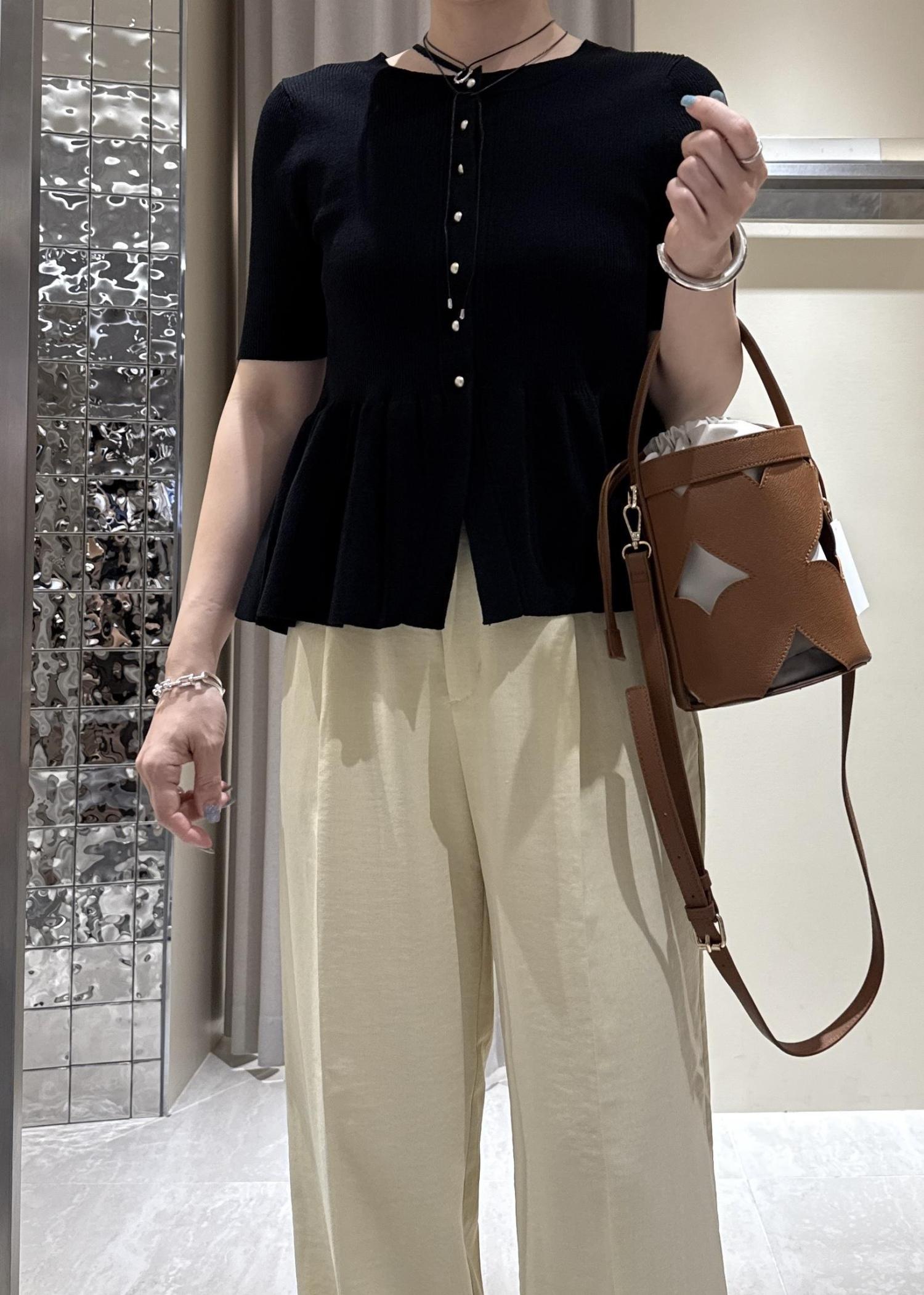 アウトレットVIS【アンチピリング】ペプラムハーフスリーブニットカーディガンブラック / F¥4,391レビューシャリ感あるサマーニット素材で伸縮性があり柔らかい着心地のニットトップスです。