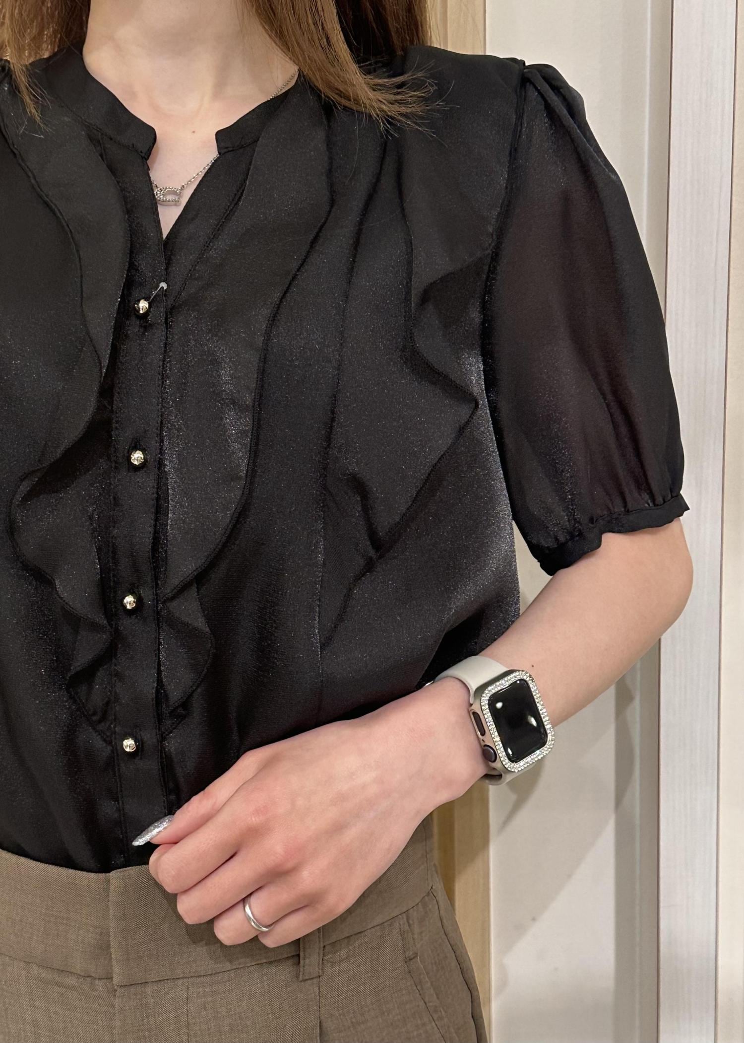 アウトレットVIS【洗える】シアーラッフルフリル半袖ブラウスブラック / F¥4,391レビューシアーフリルが華やかなブラウス。