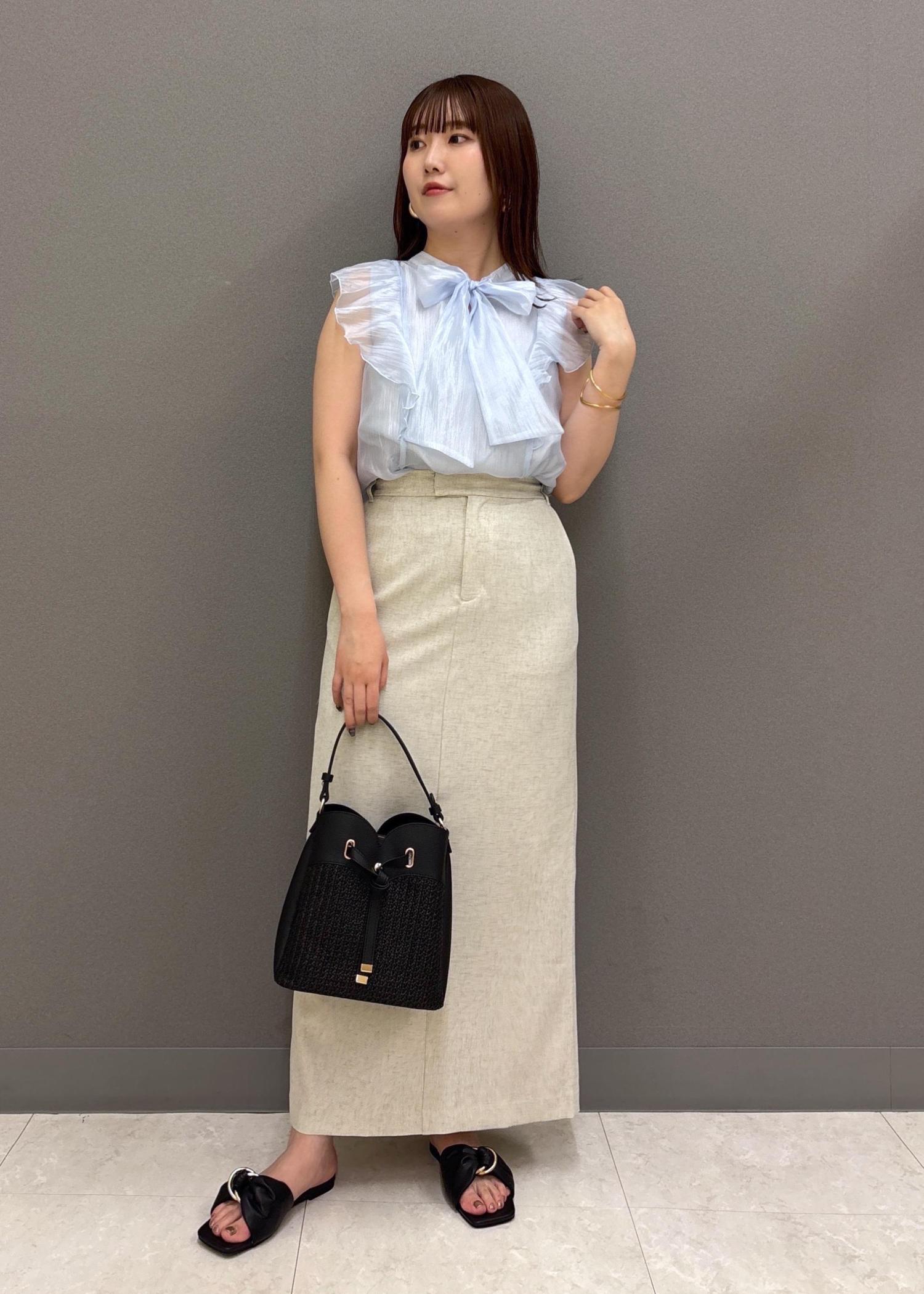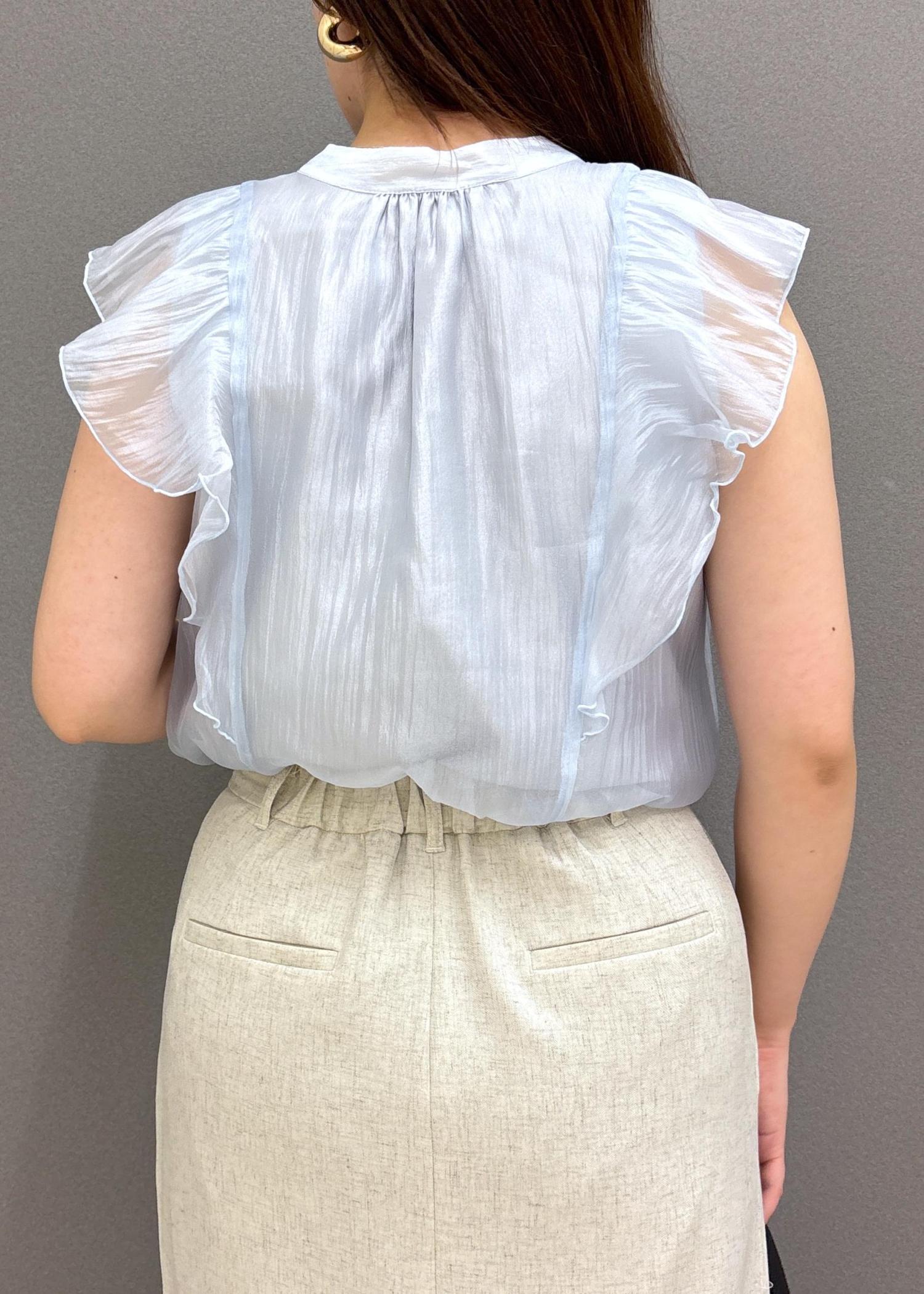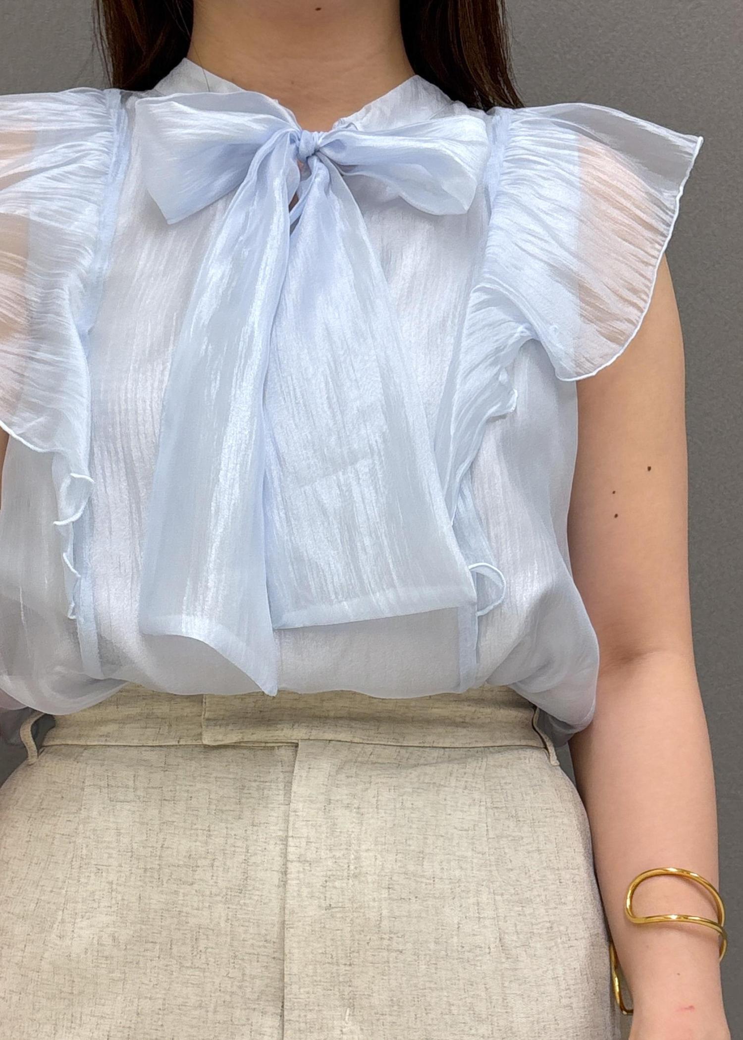 VIS【店頭人気】主役級!華やぎシアーシャイニーボウタイフリルブラウス【前後2WAY】【洗える】サックス / F¥5,489レビュー160㎝だと腰にかかる着丈でした!裏地がついているのでインナーの透け感は気になりにくいです!肩まわりの大きめフリルが気になる二の腕をカバーしてくれるのも嬉しいポイント◎