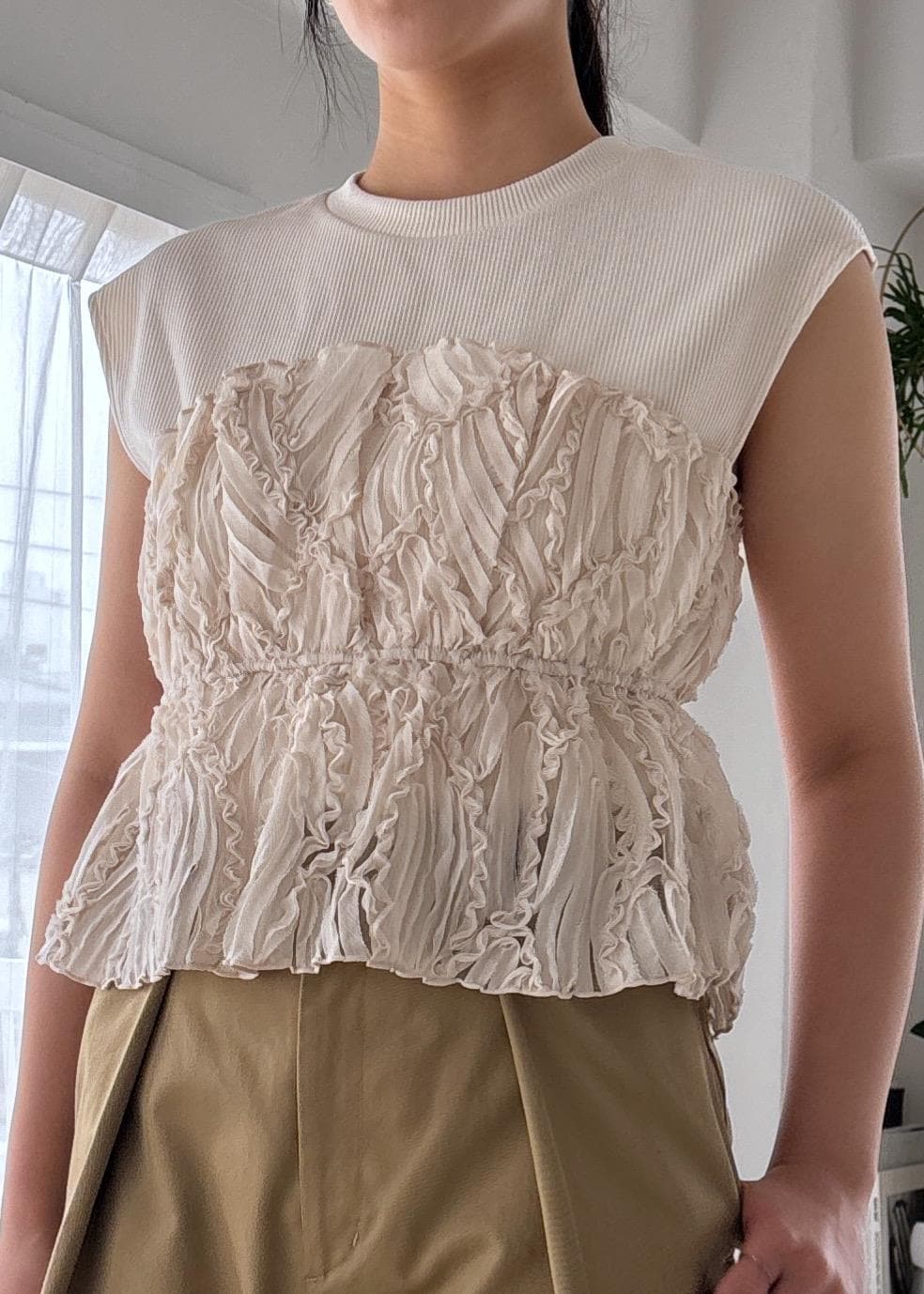 VIS旬なレイヤードスタイルが叶う!ビスチェドッキングフレンチスリーブプルオーバー【洗える】キナリ系 / F¥5,489レビュー165cmでFサイスを着用、腰にかかる丈感です。