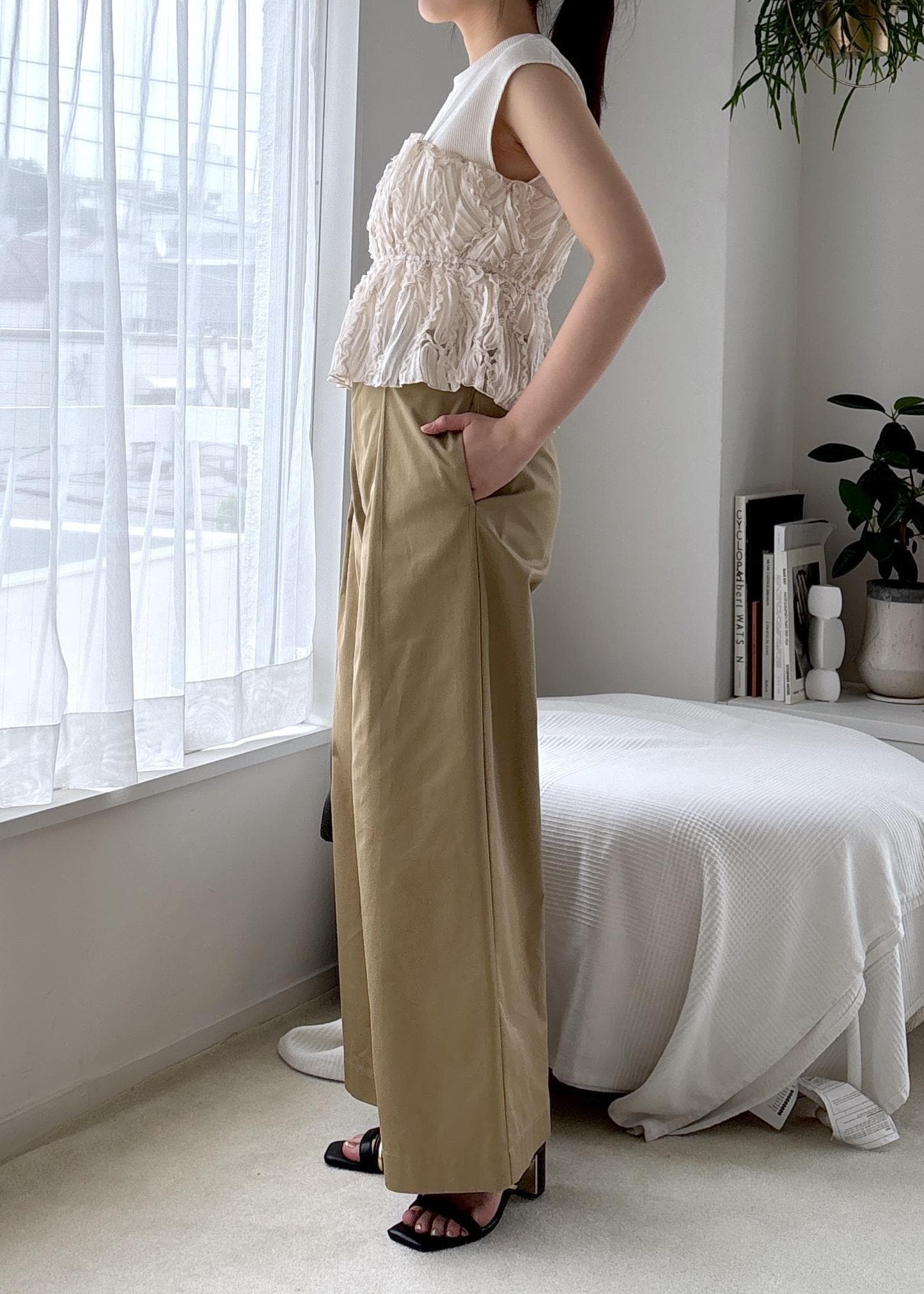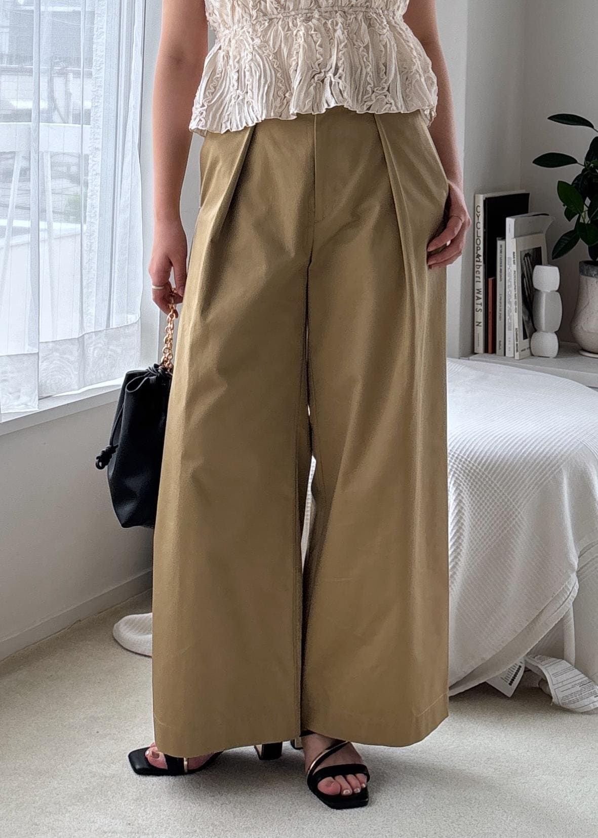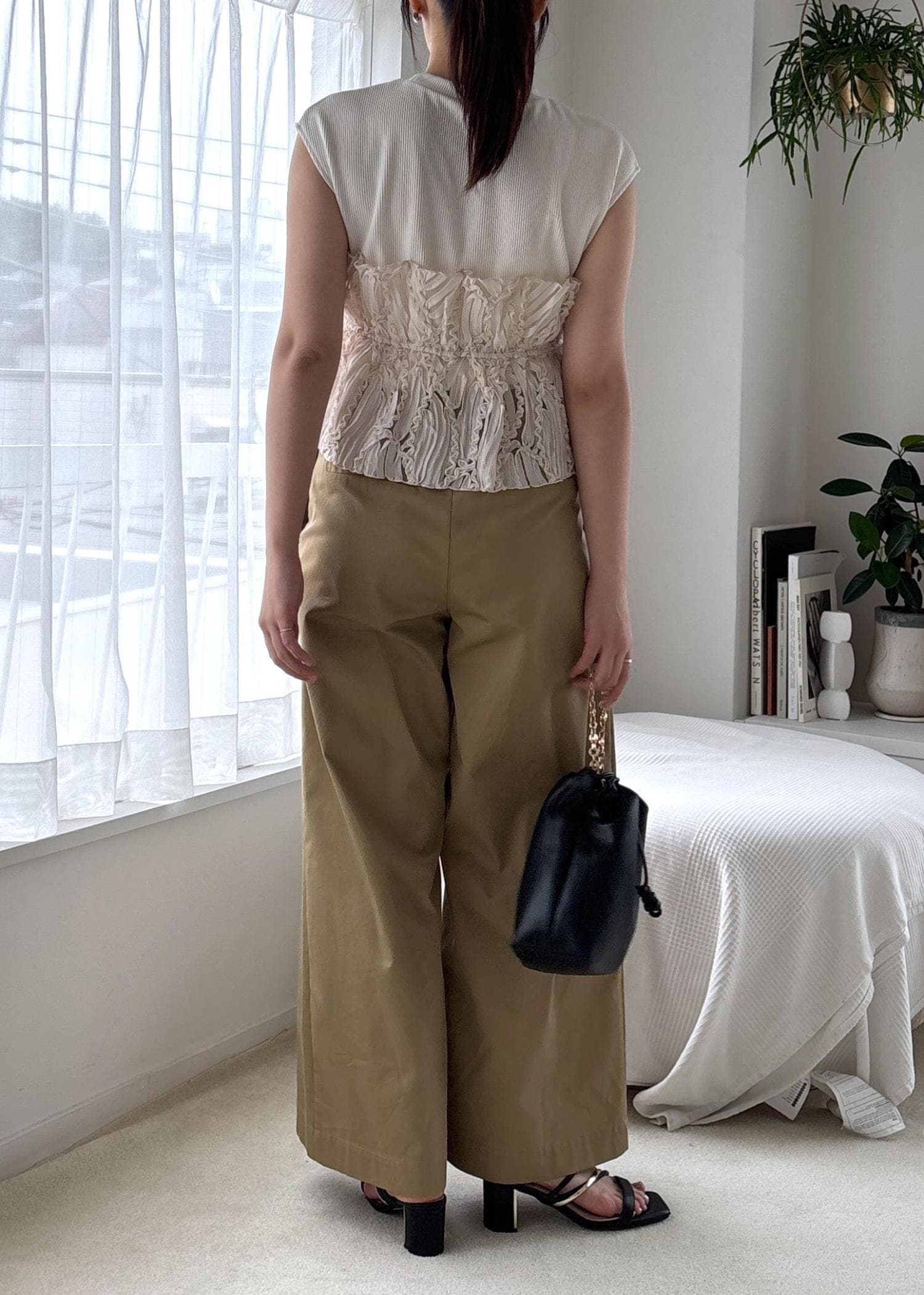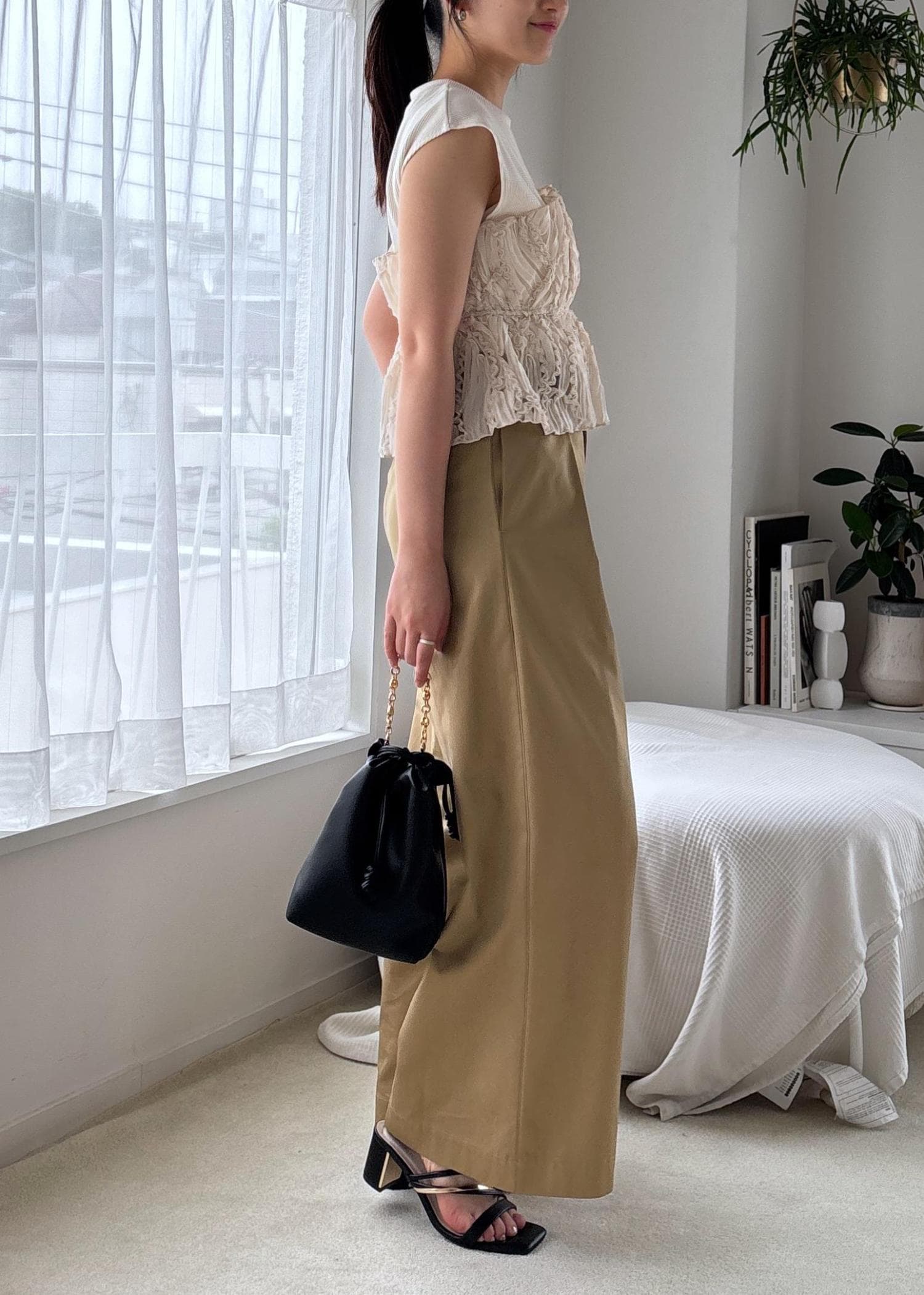 太めなバギーパンツ。ウエストはややフィット感があり、メリハリが出てすっきり着用出来ます◎