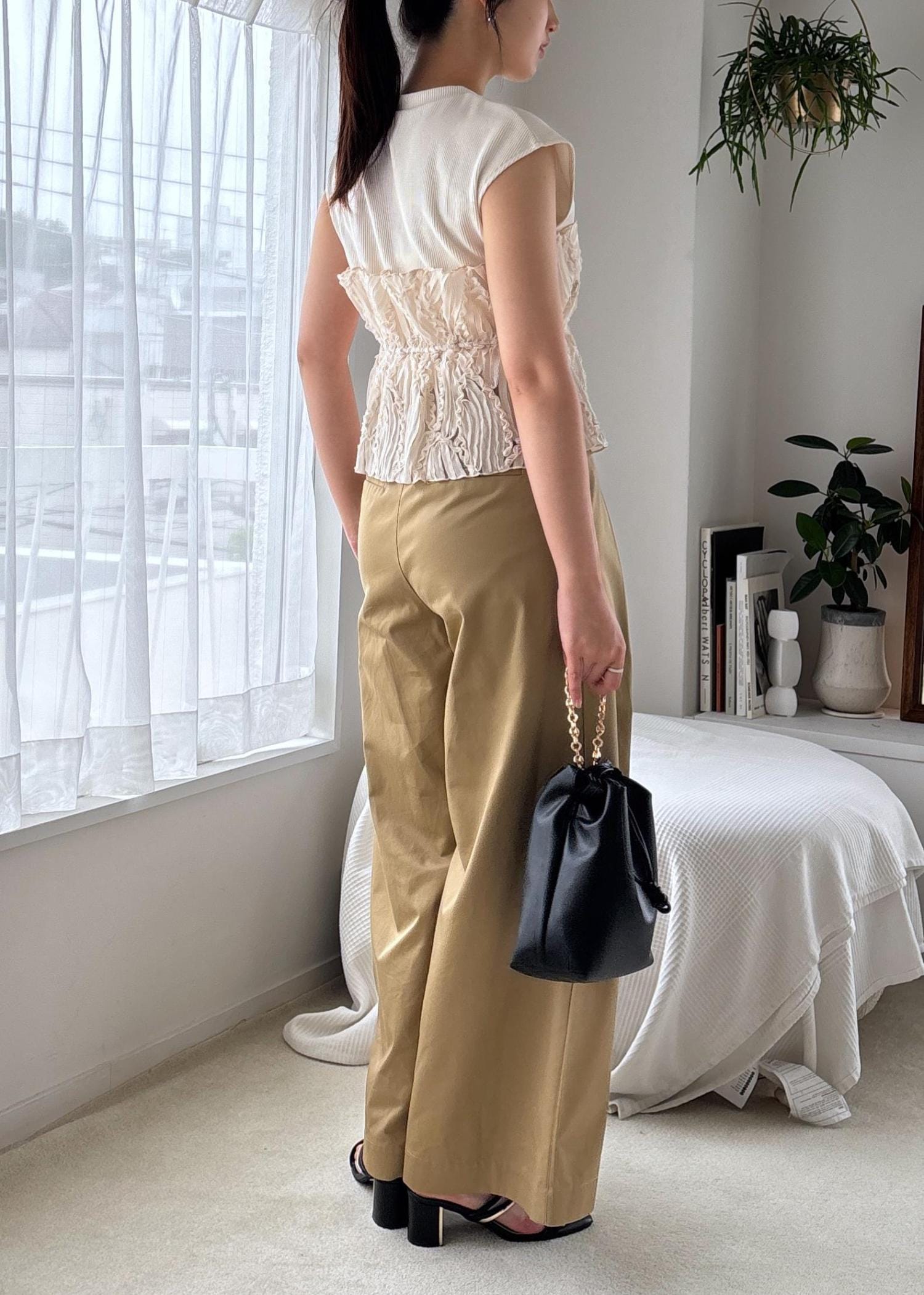 裾をインしてもビスチェ部分が腰骨にかかるので安心感があります○