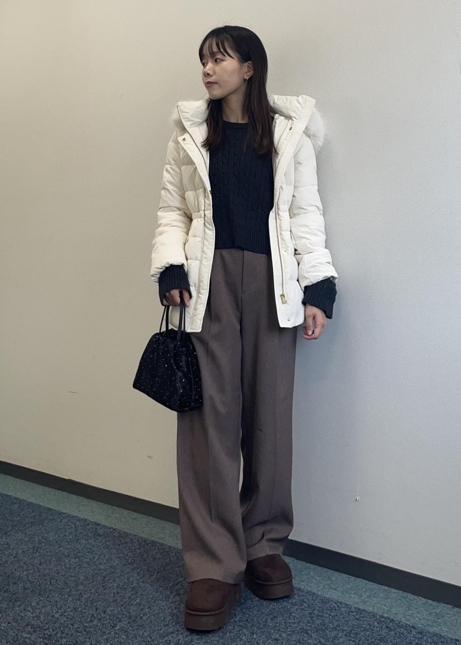 程よくワイド感があり、下半身ラインをカバーしてくれます。裾も絞れて調整できるのもポイント。