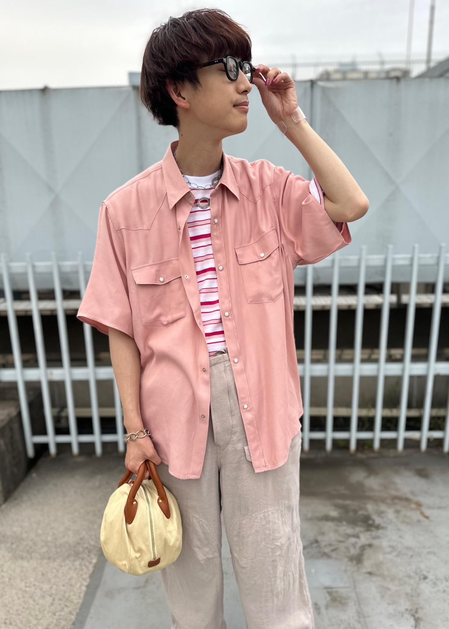 アウトレットADAM ET ROPÉ HOMMEウエスタン ショートスリーブシャツピンク / L¥6,776レビュー178cm、痩せ型、骨格ウェーブでLサイズを着用しています。