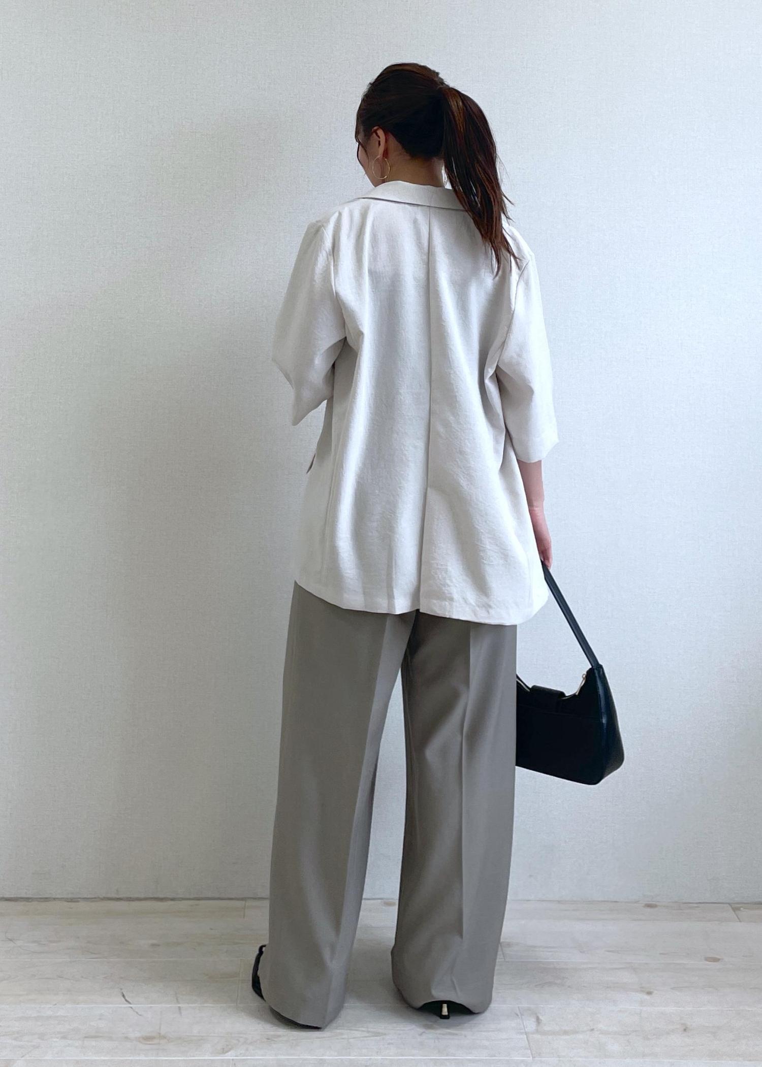 VIS【美easy】ハーフスリーブジャケット/セットアップ対応・洗えるキナリ / S¥7,909レビュー150㎝でSサイズ着用です。