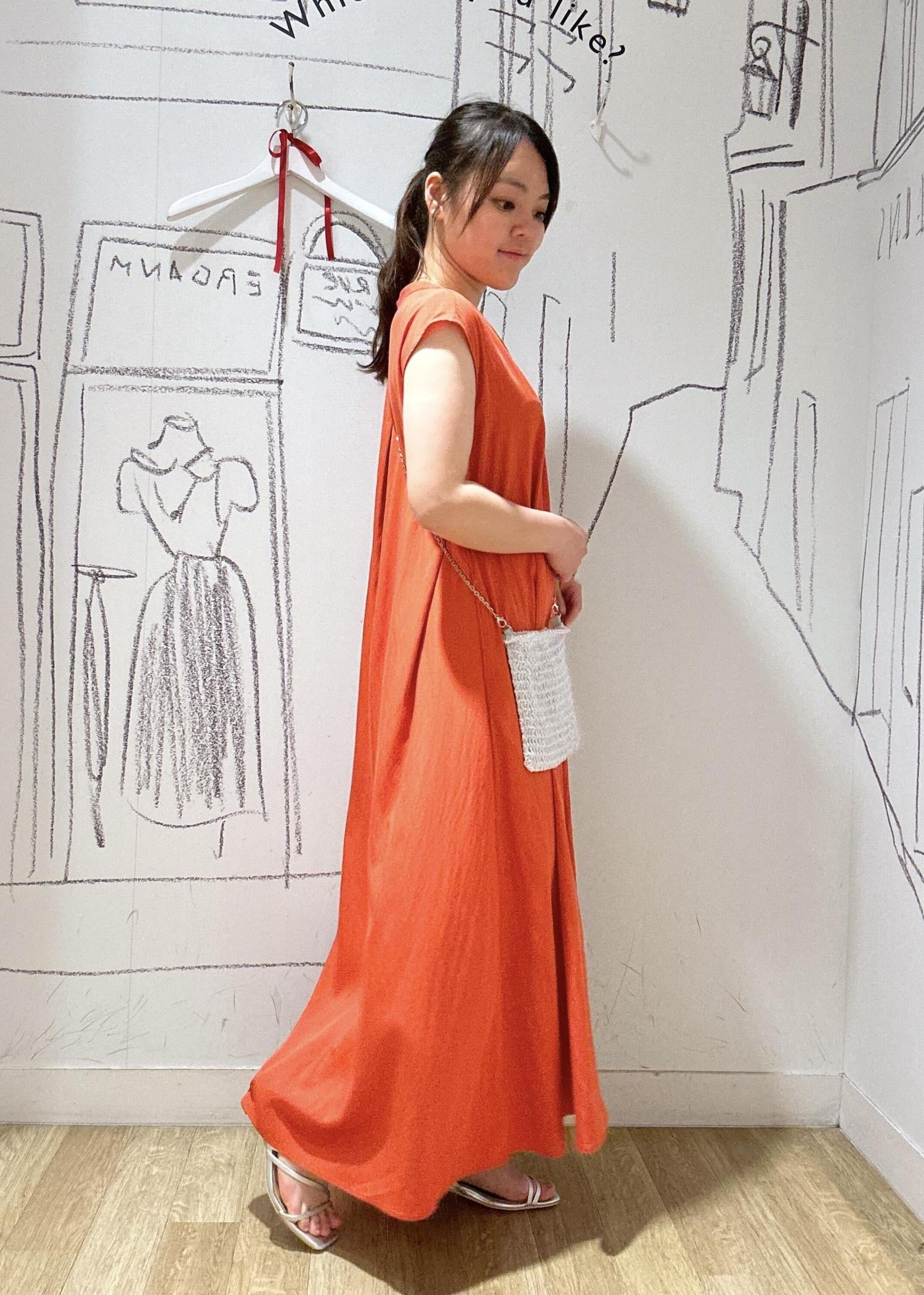 ROPÉ PICNICリラックススキッパーロングワンピースオレンジ / 38¥6,490レビューリラックス感のある、ゆとりのあるシルエットなので、体形カバーできて安心。
