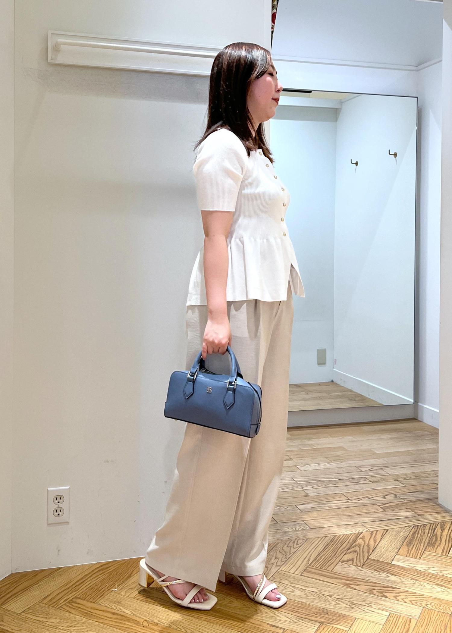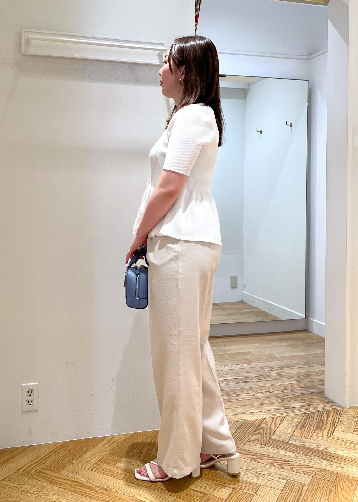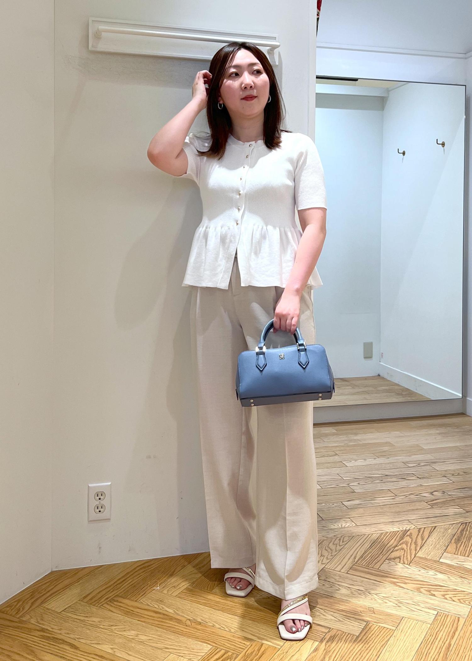 1枚で着映えするペプラムカーディガンにシンプルにワイドパンツを合わせました。