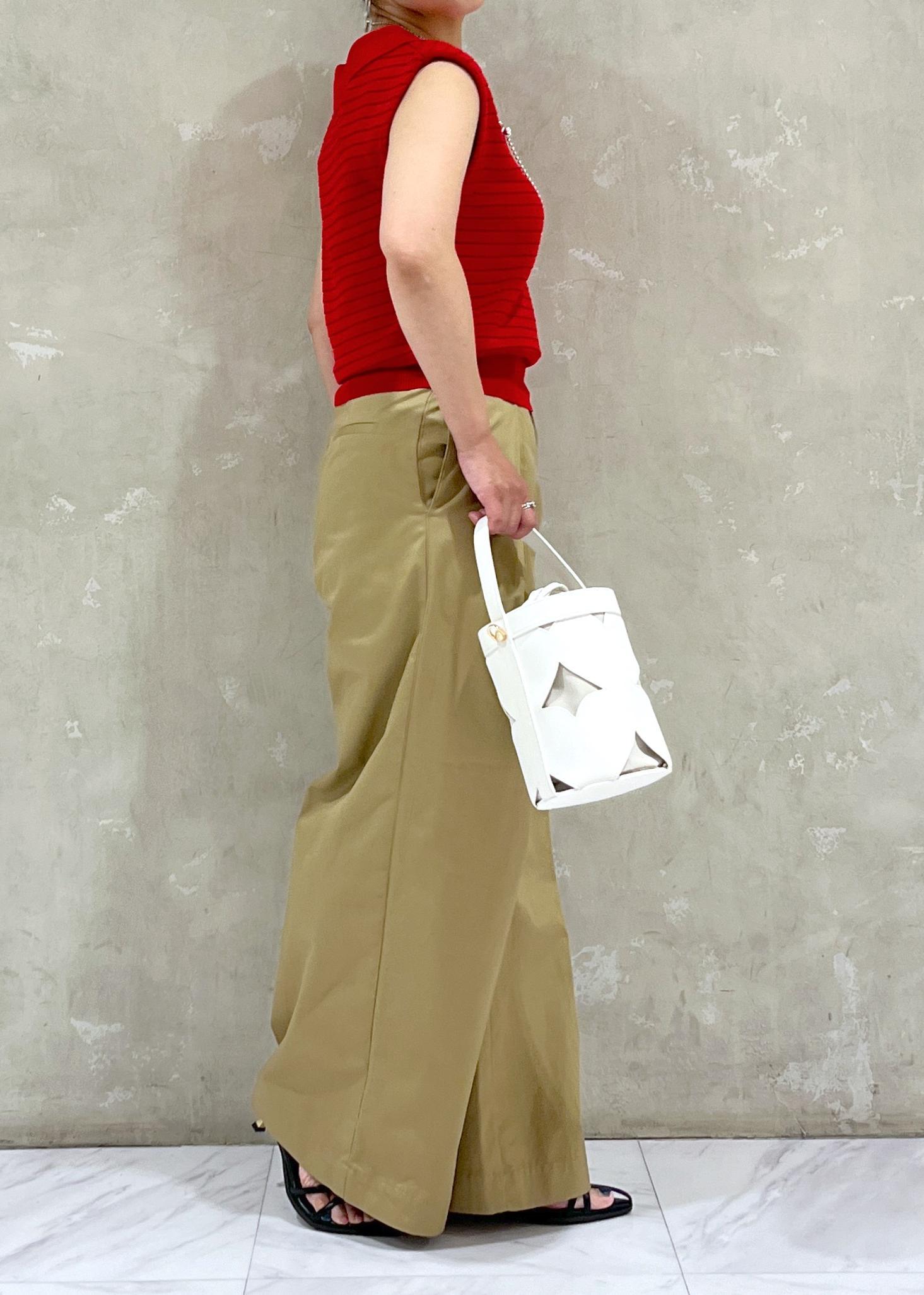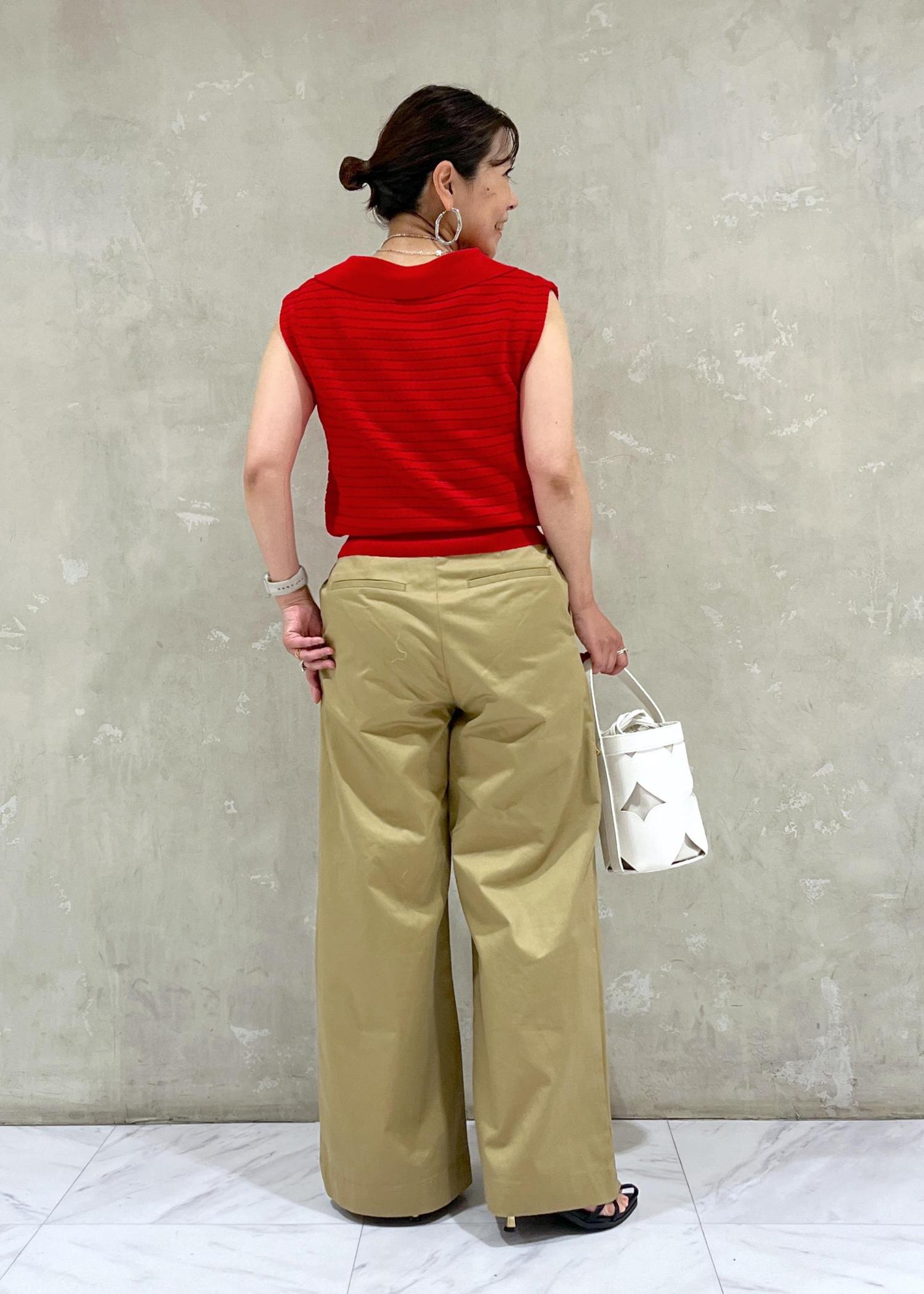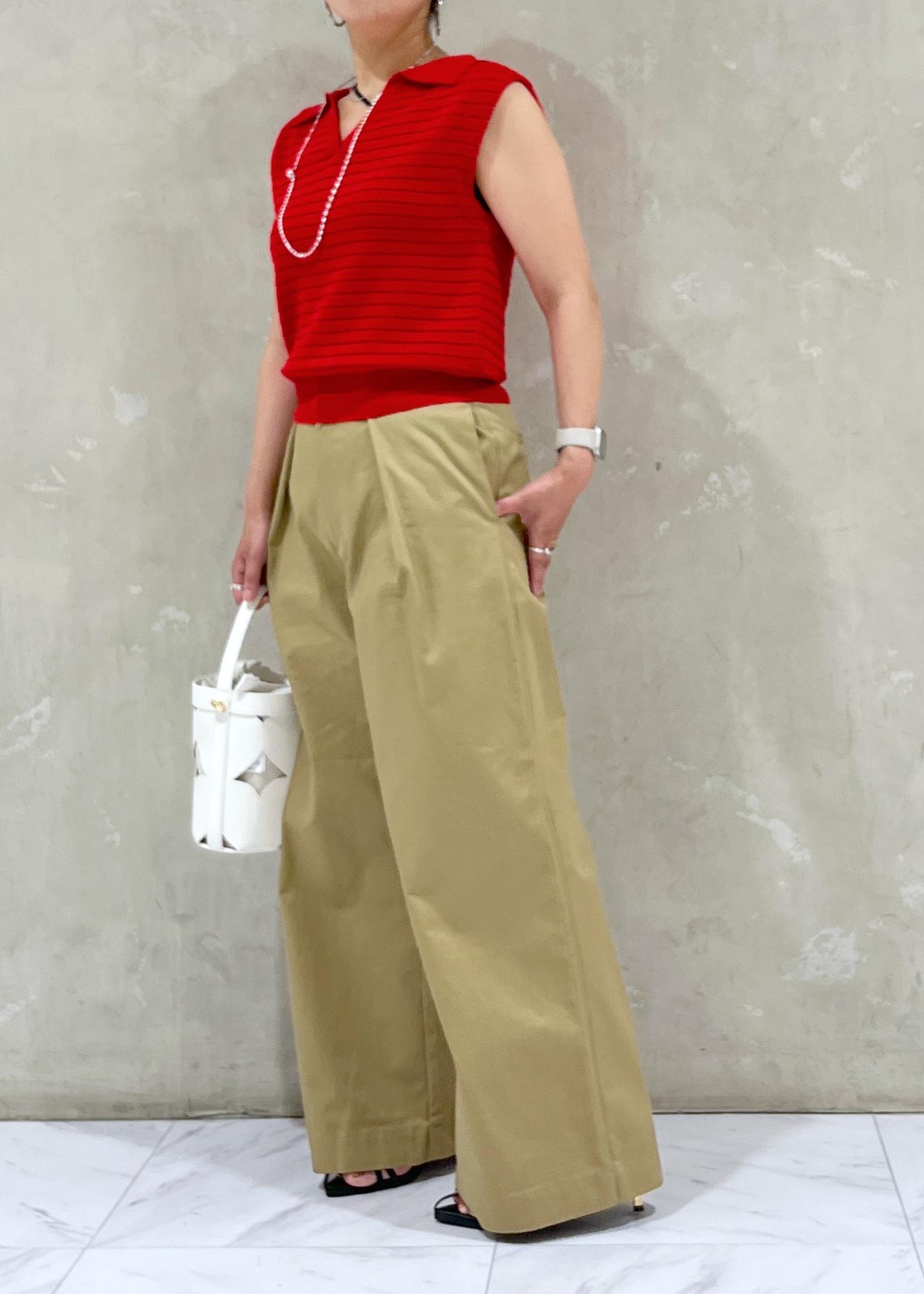 トップスでスッキリ見せできるので、ボトムはパンツでもスカートでも合わせやすいです。 -