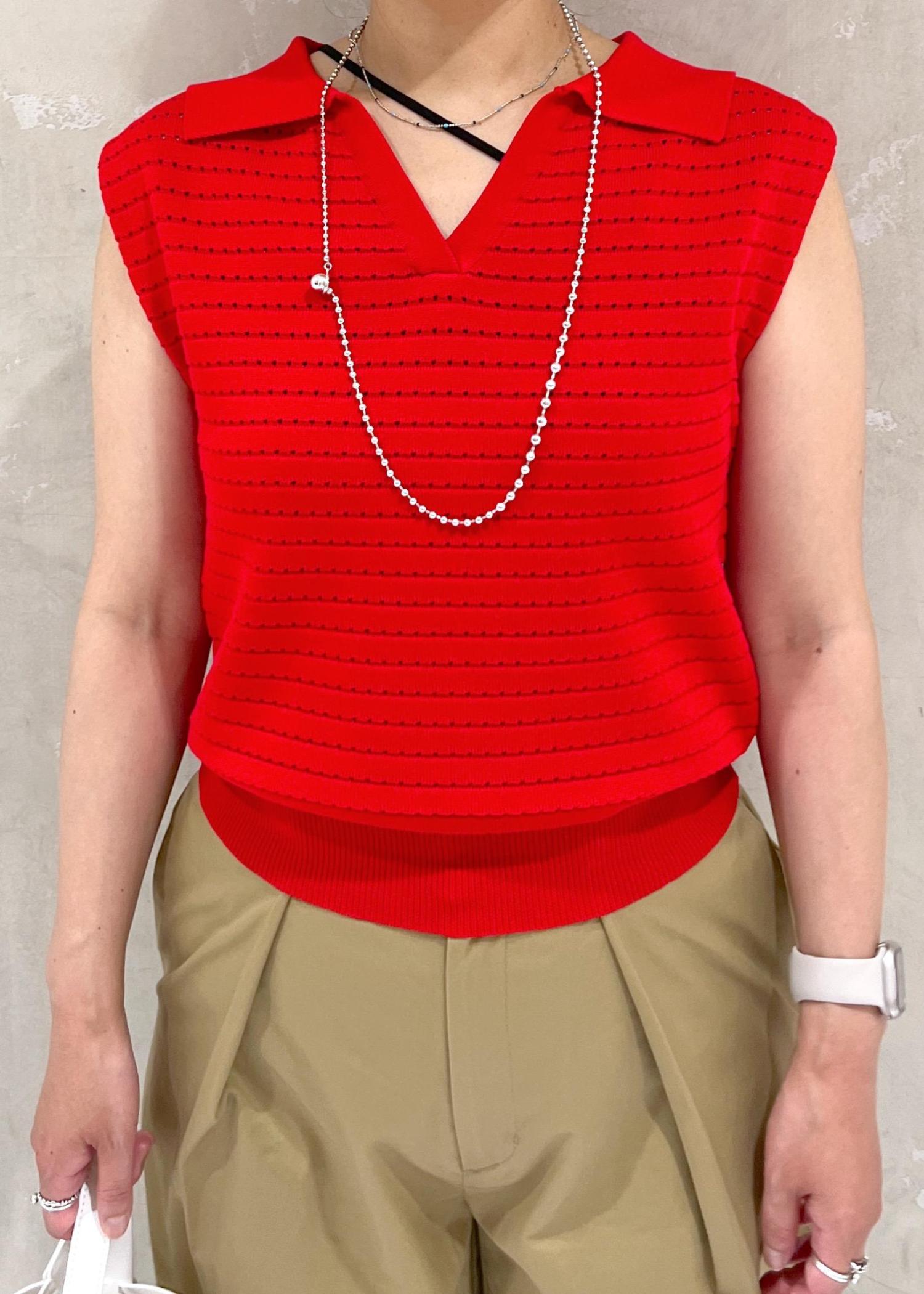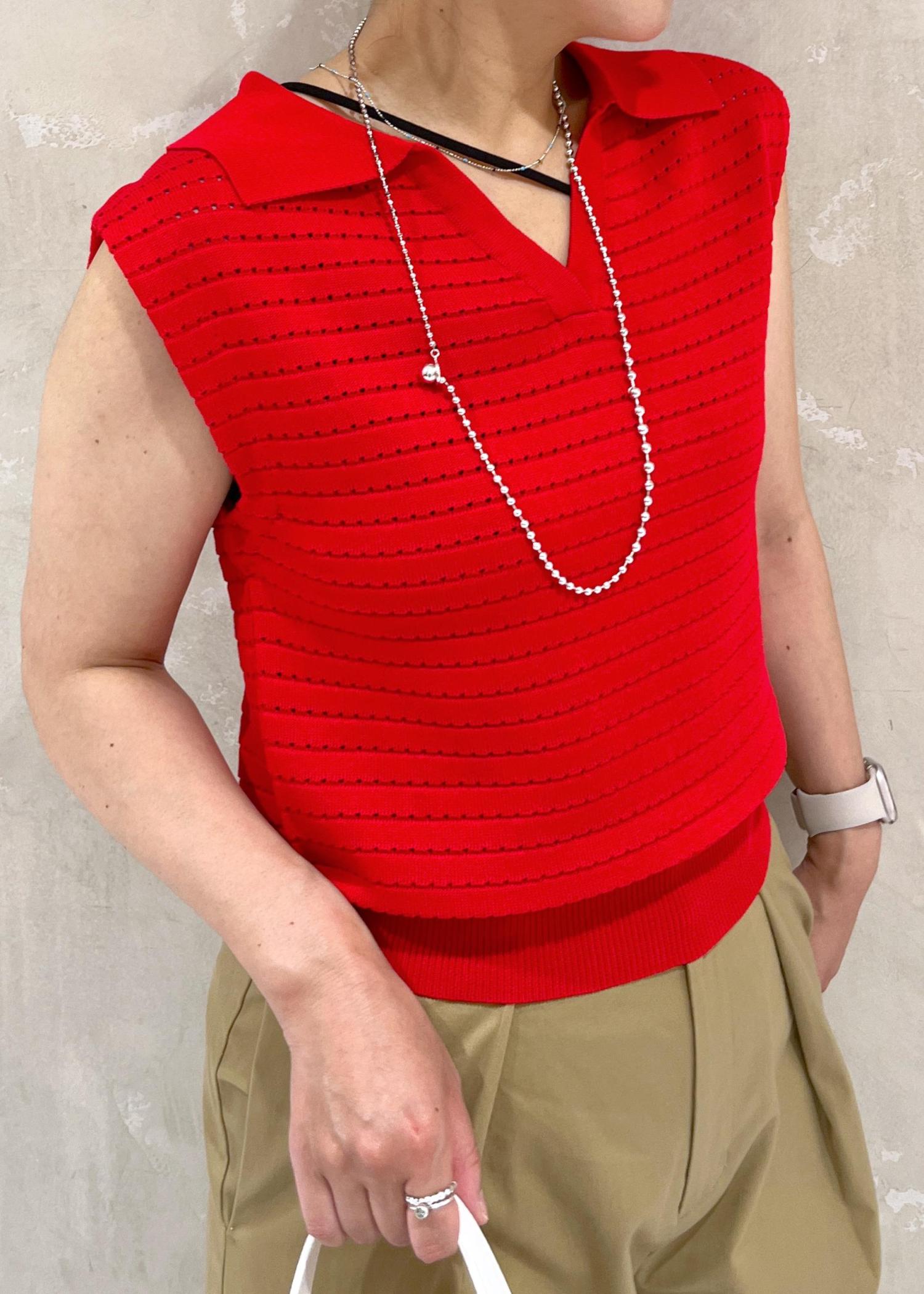 アウトレット 2BUY10%OFFVISスキッパーフレンチスリーブアイレットニットレッド / F¥3,842レビュースキッパー襟で首元のすっかり感もあり、着丈がコンパクトなのでそのままアウトで着用できます。