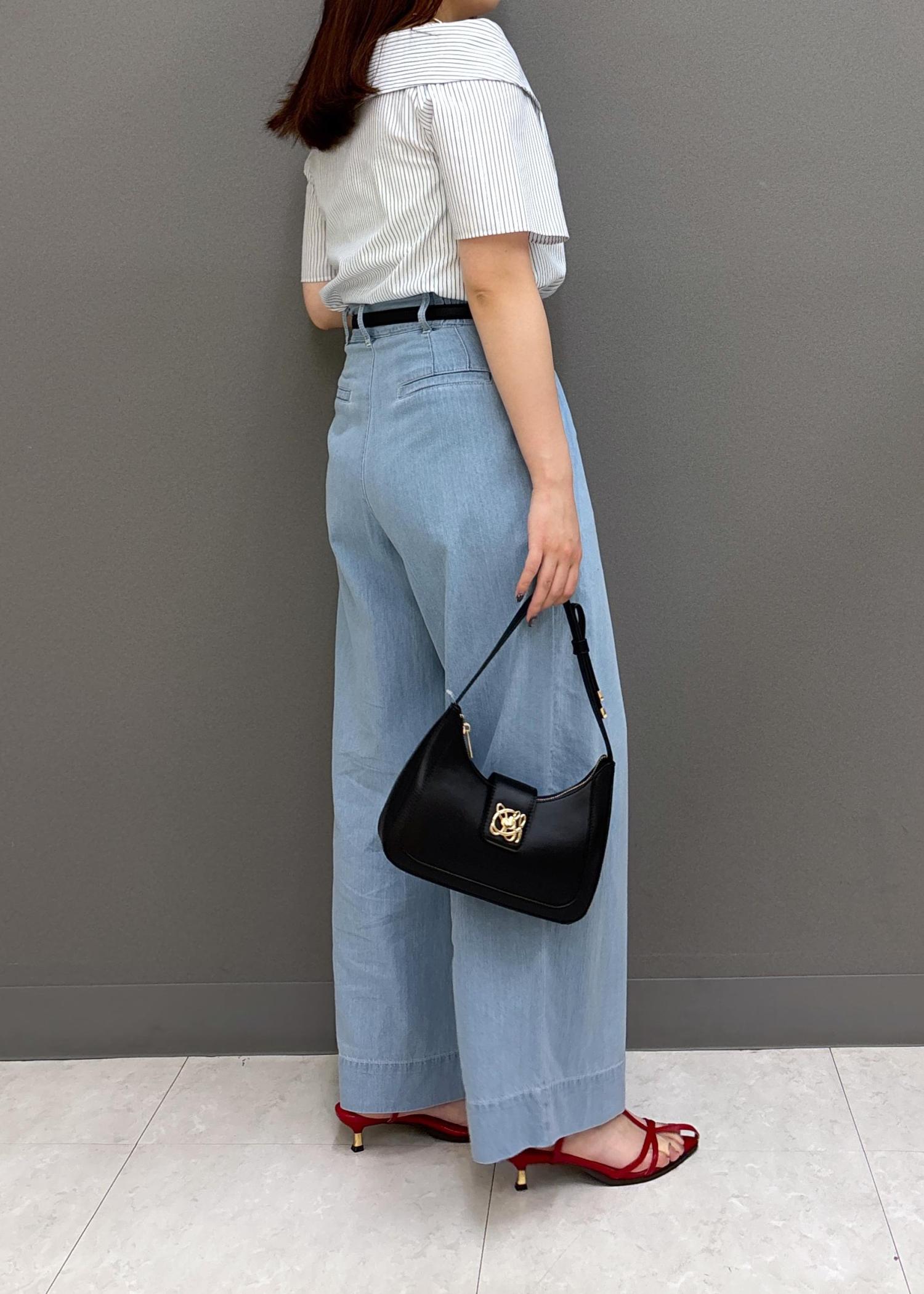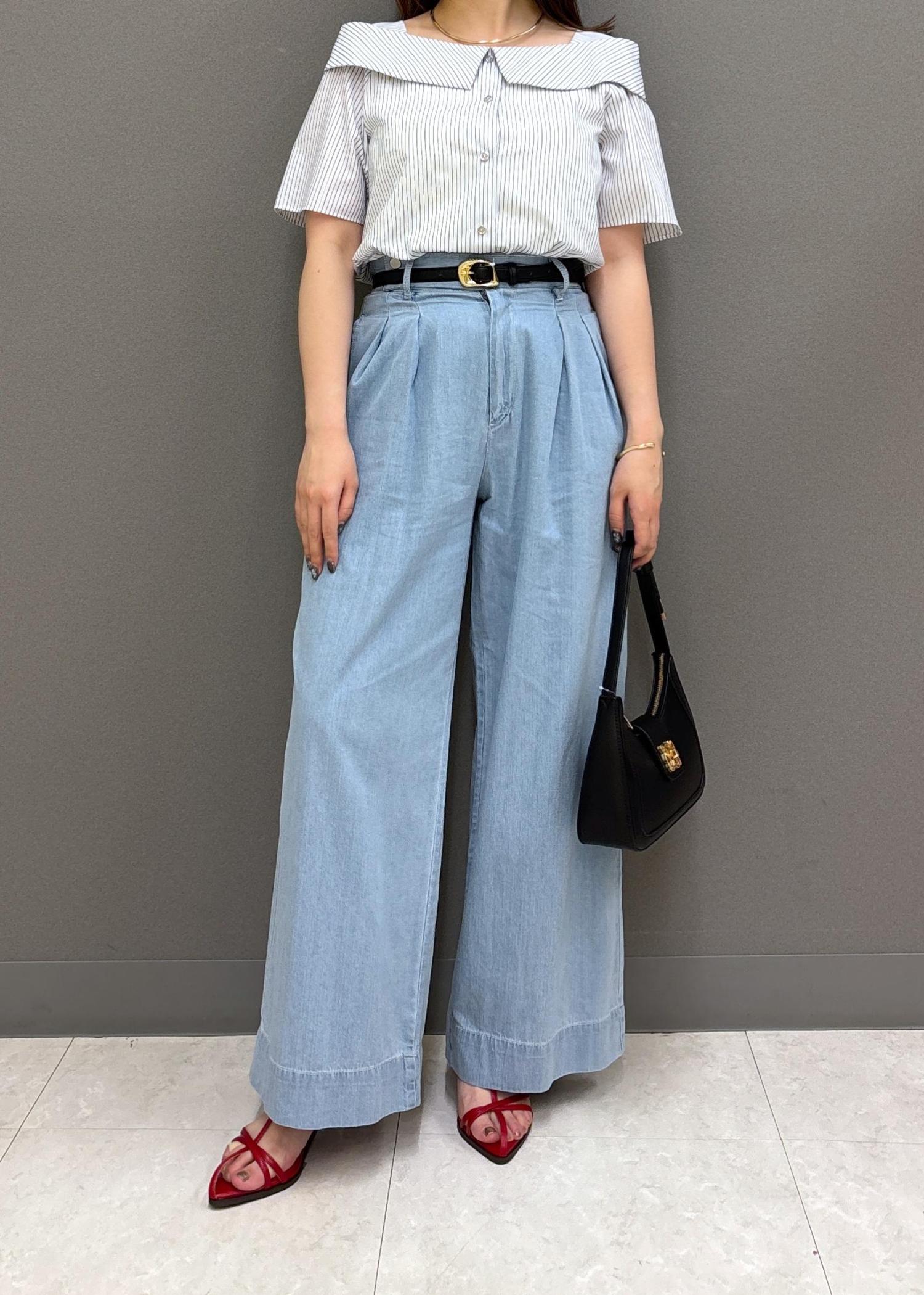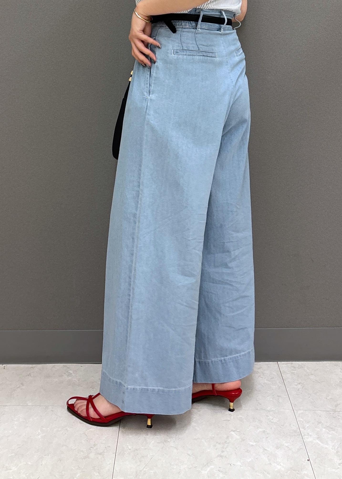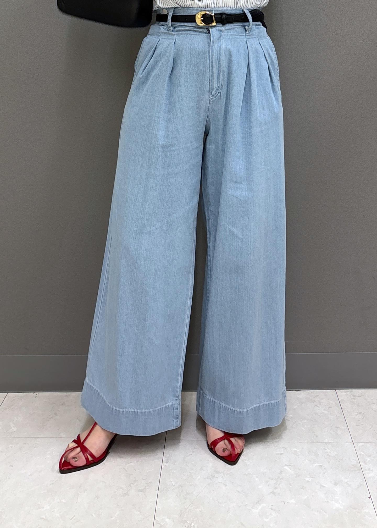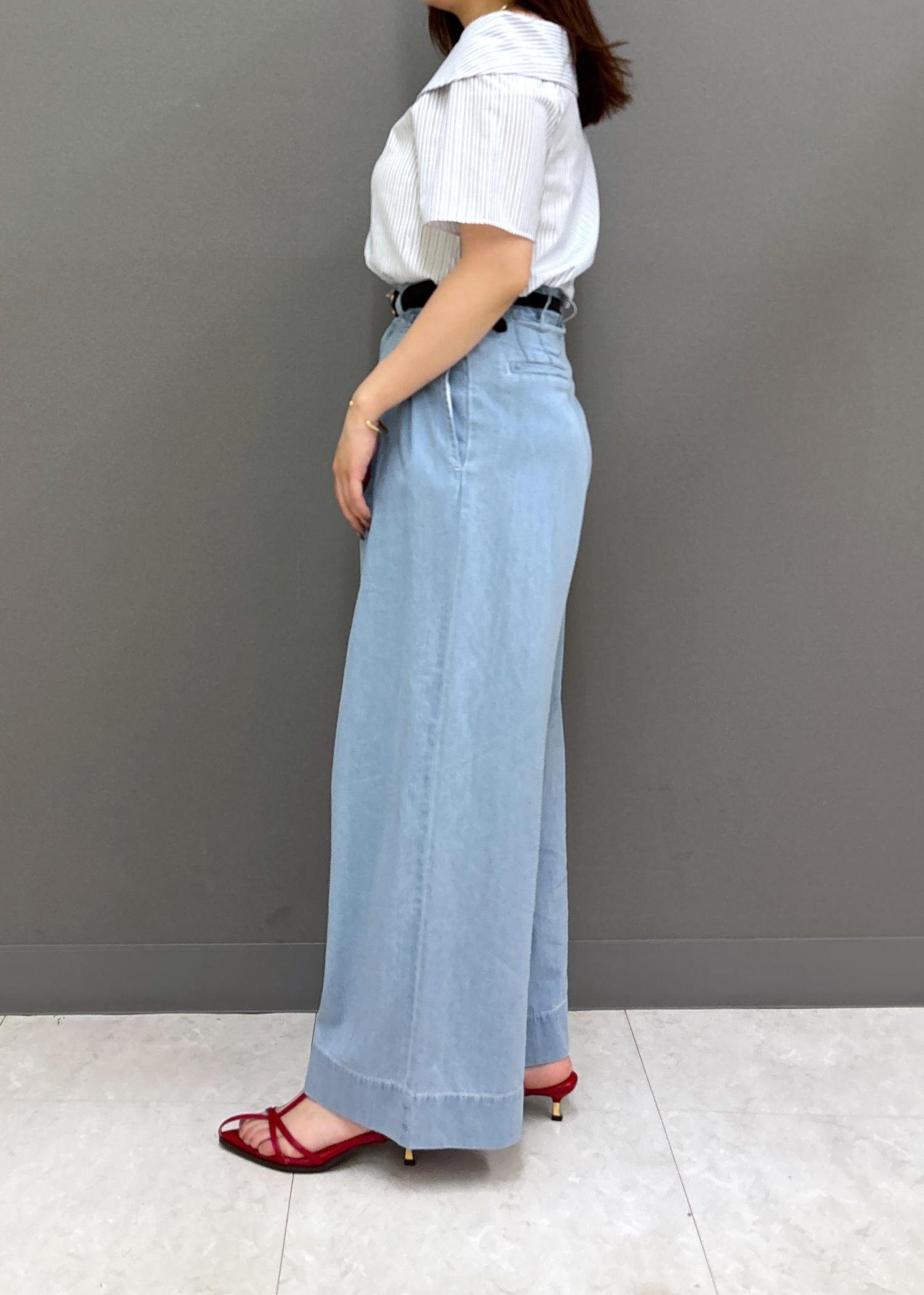 アウトレットVISタックデザインリラックスデニムパンツサックス / M¥3,460レビュー160㎝ / Mサイズ着用。足首まで隠れる長めの着丈でしたが、フラットシューズでもギリギリ履けました!柔らかくて薄手の素材なので夏でも快適に着られそうです!