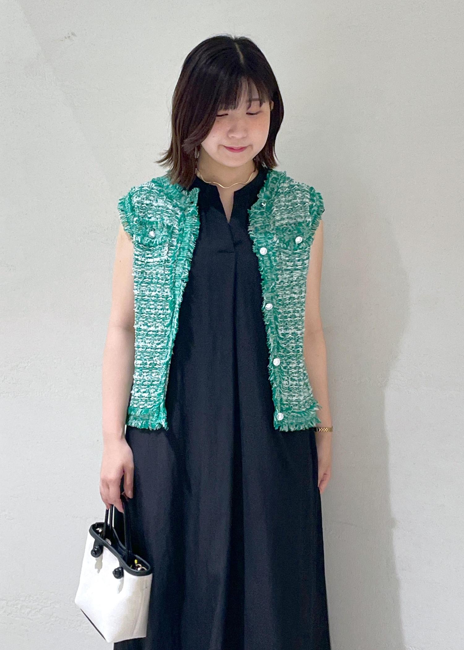 ハーフスリーブのツイード合わせでも可愛いと思いますよ✨