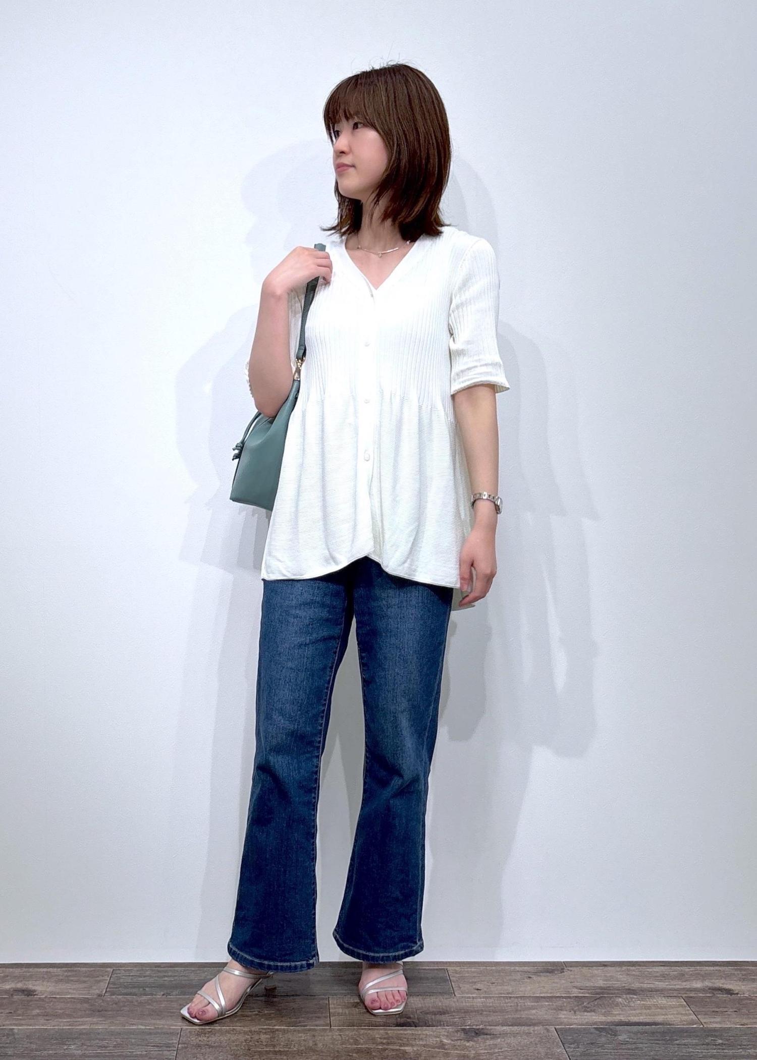 バッグのカラーを差し色に爽やかな印象にしました◎