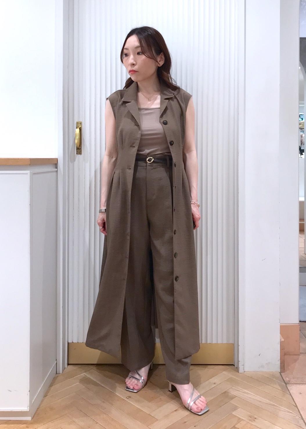 ちょっと珍しい、ロングベスト×パンツのセットアップコーデです。