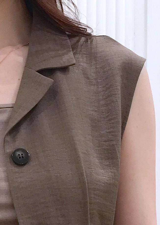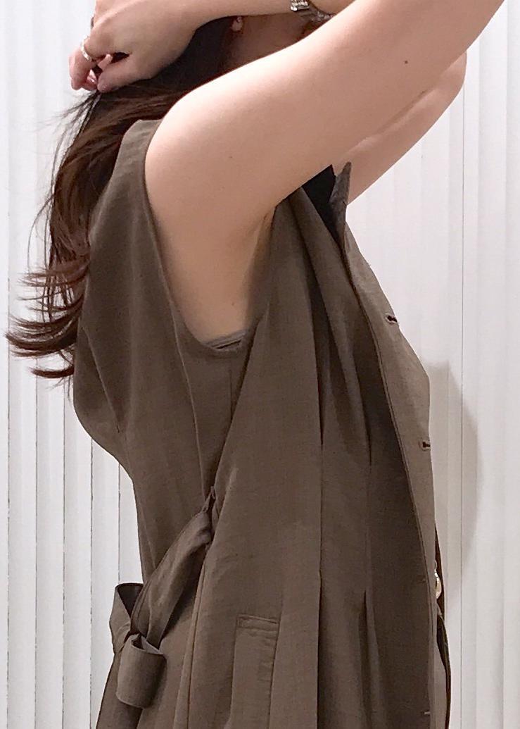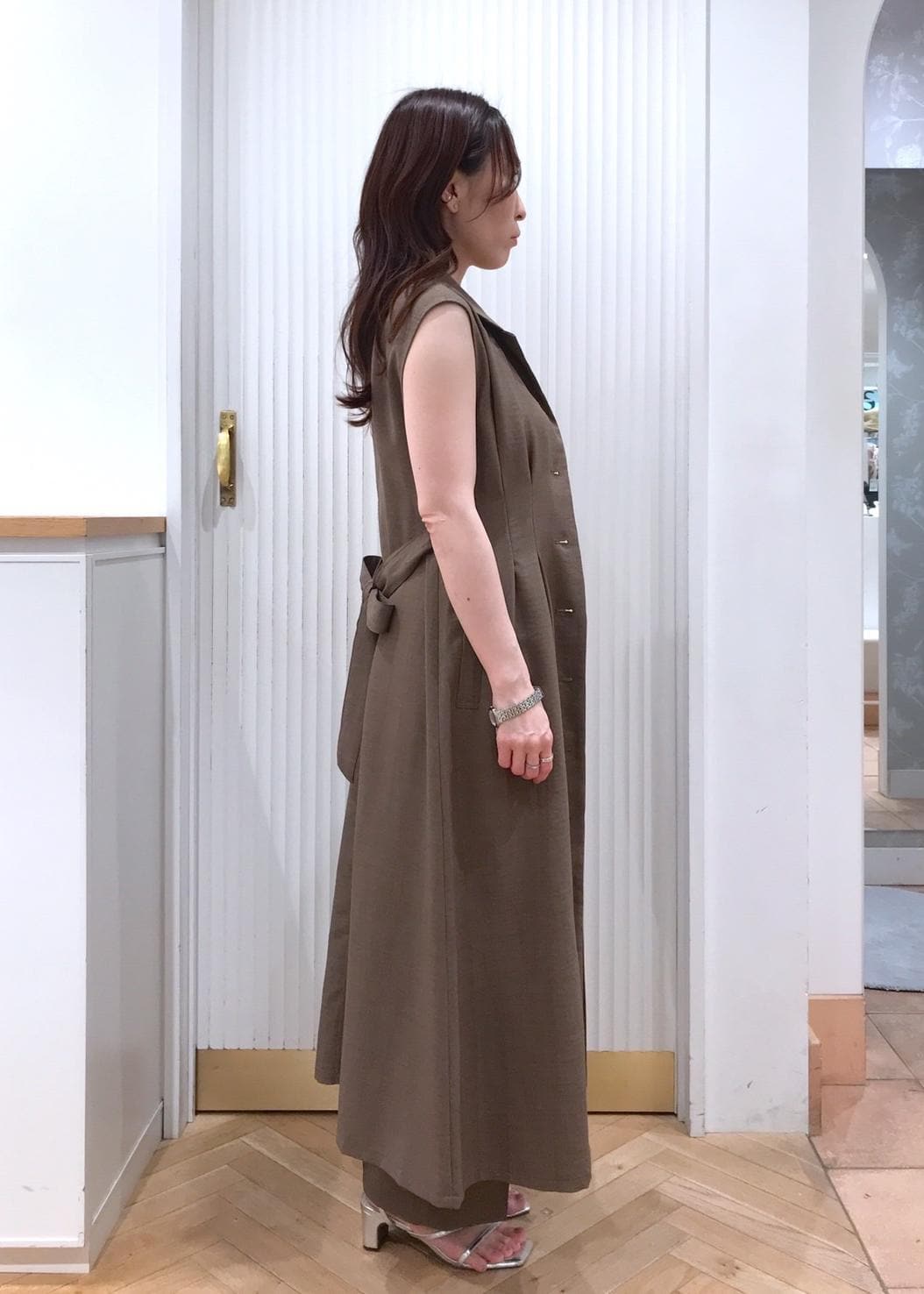 こちらのベストはハイウエストデザインなので、身長が低くても重心が下がって見えず、バランス良く着られますよ。