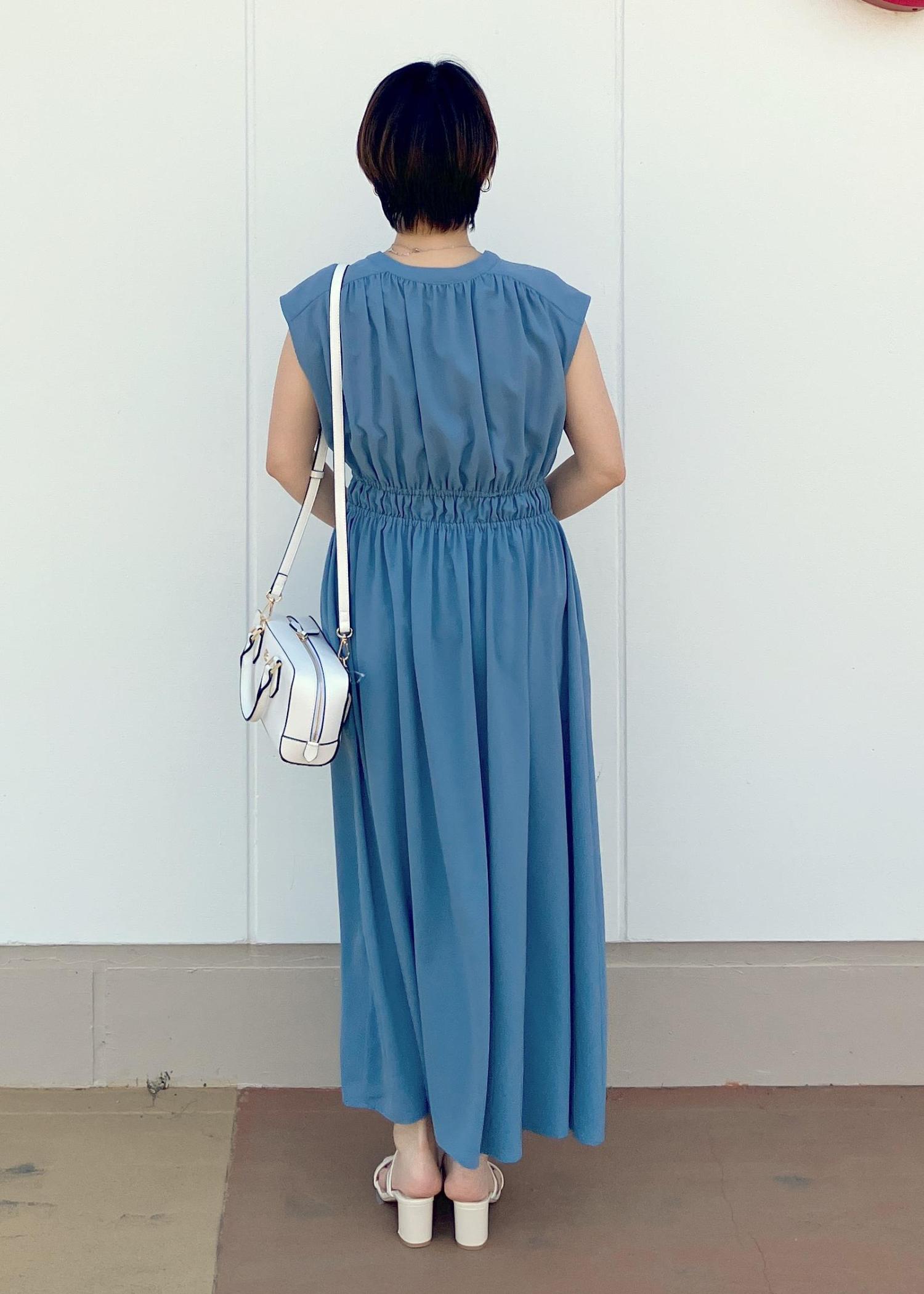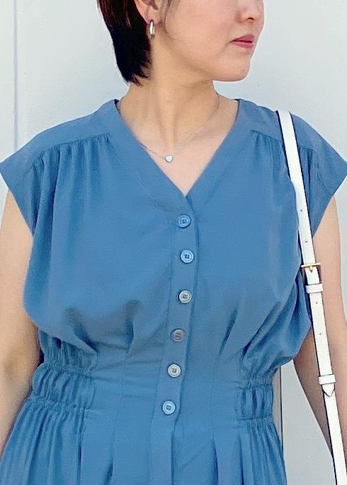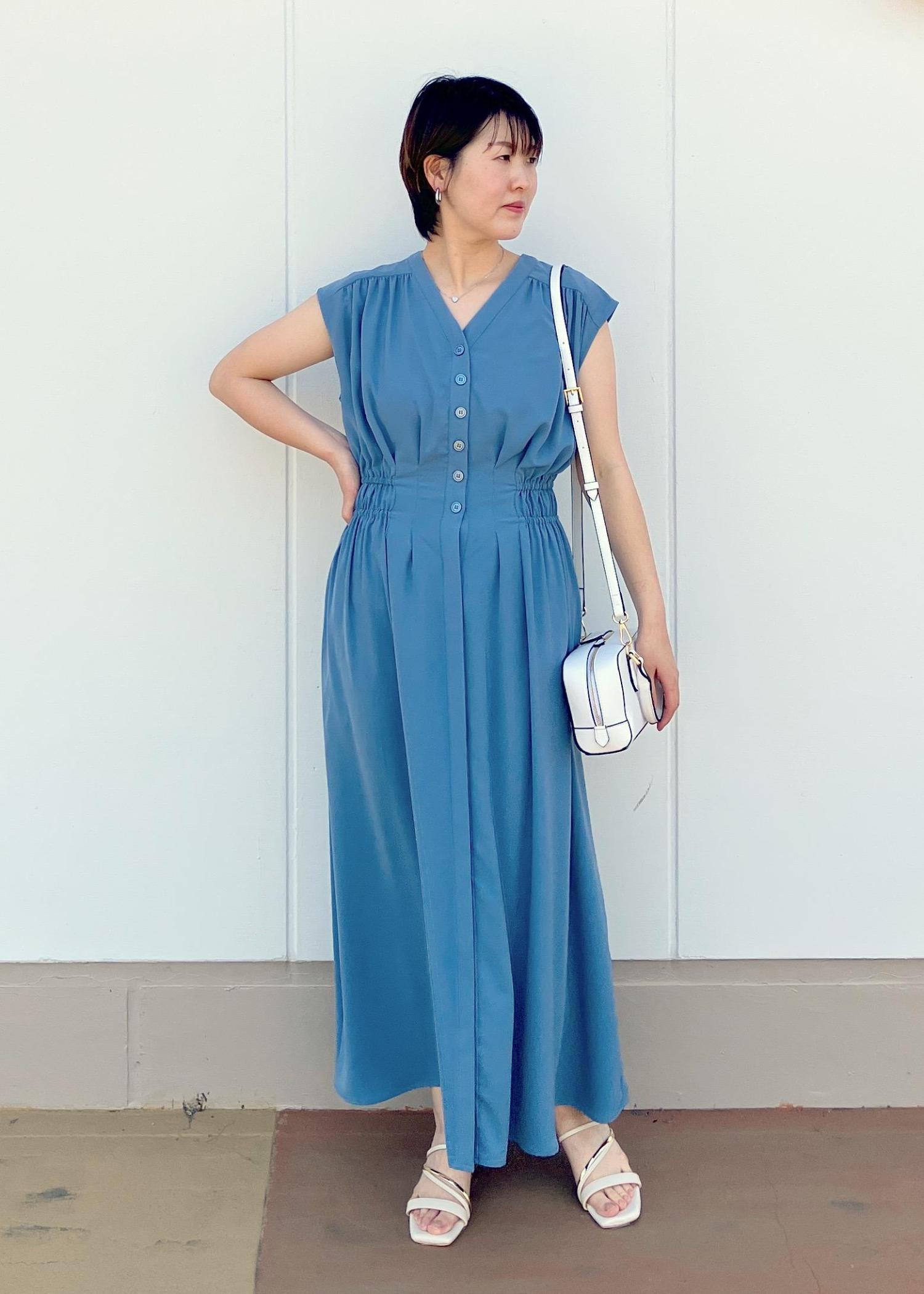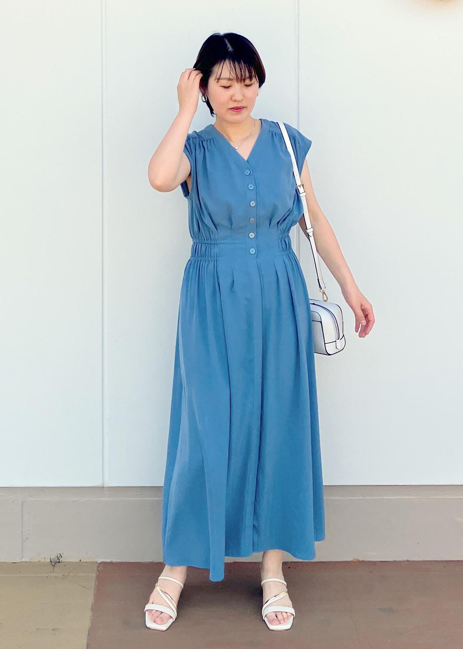 単調になりやすいワンピースは小物合わせがポイントに!こちらのコーディネートでは小物を白でまとめてみました!夏の暑い時期にはカラーで涼しく爽やかに着ていただけたら嬉しいです!