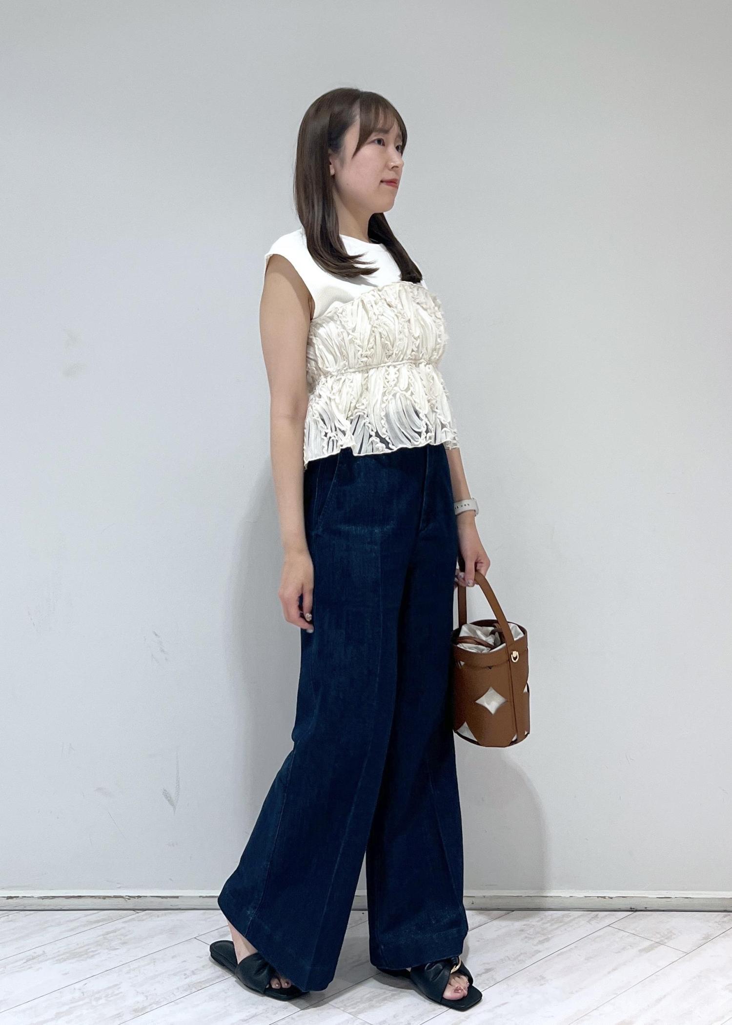アウトレットVISグリッターワイドデニムパンツブルー系 / M¥5,339レビューさりげなくラメが入っていてお洒落なデザインです!ゆったりサイズで太ももカバー◎生地感は柔らかく着心地抜群です。