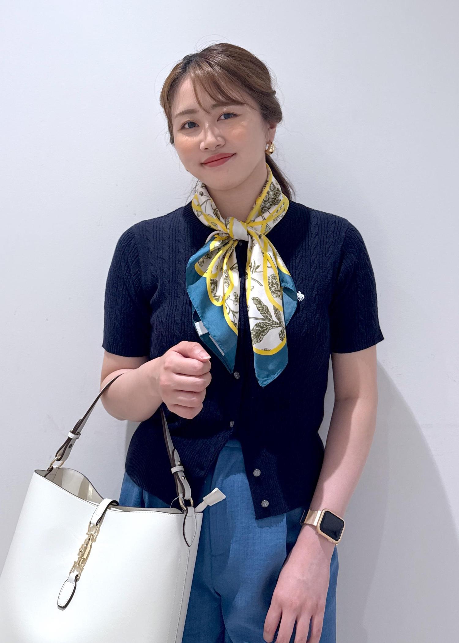 全身ブルー系を意識してスカーフでアクセントで女性らしさをプラス⭐︎