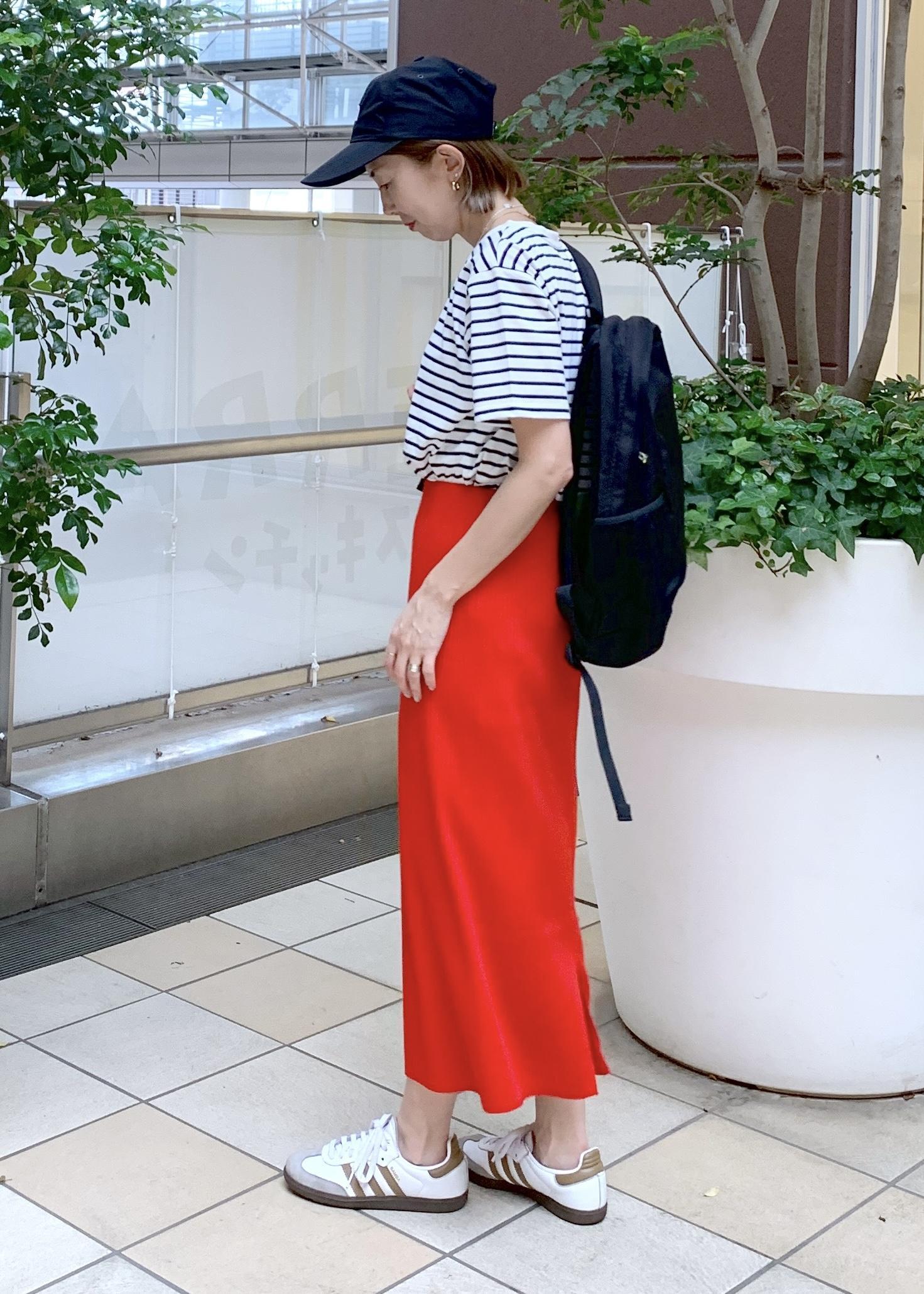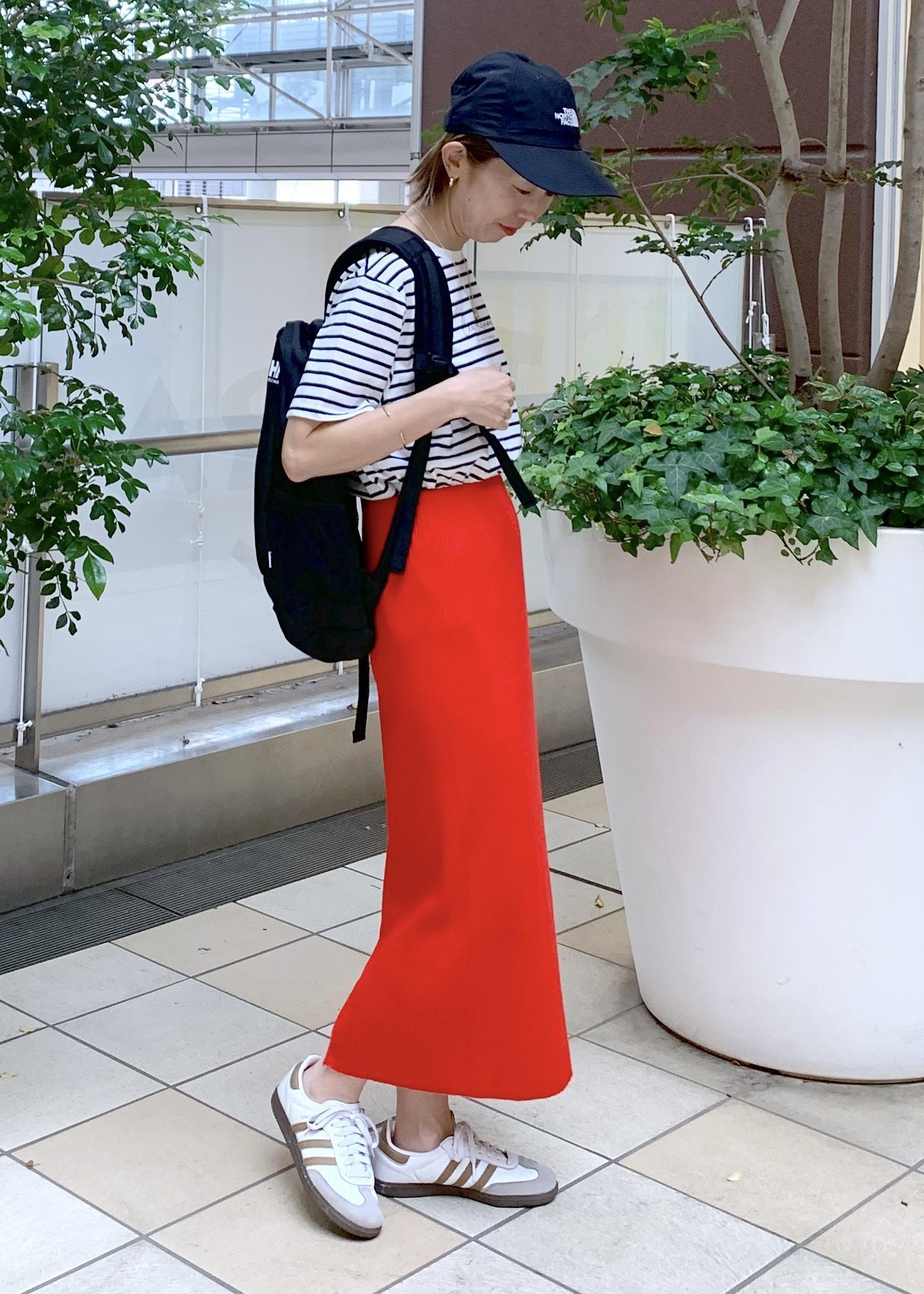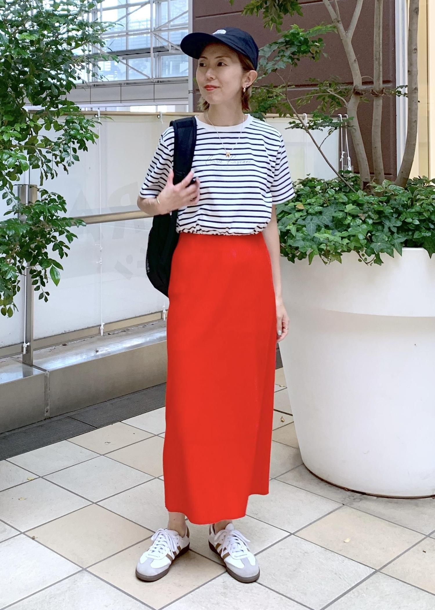 ボーダーを合わせて大人カジュアルなスタイリングに。