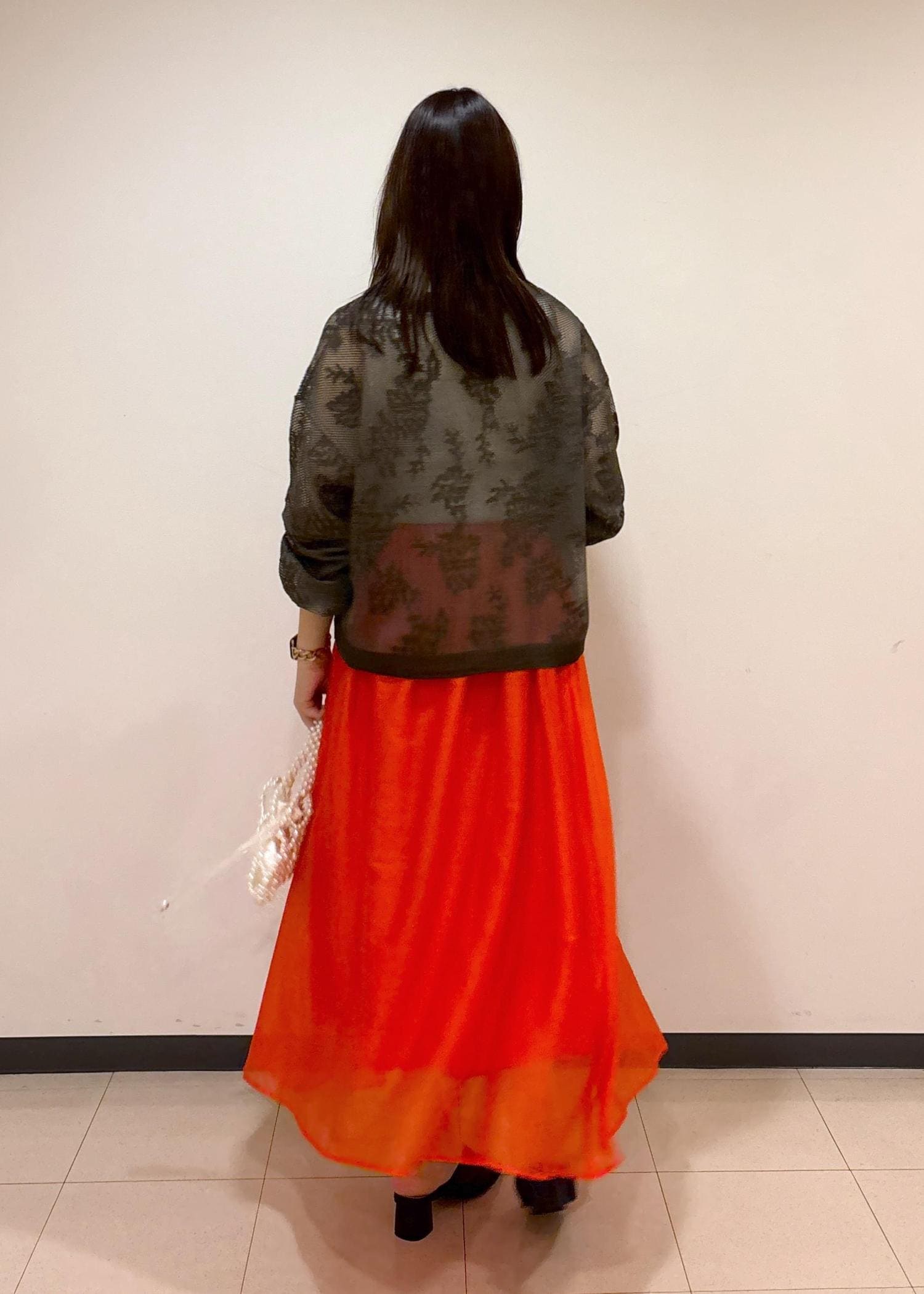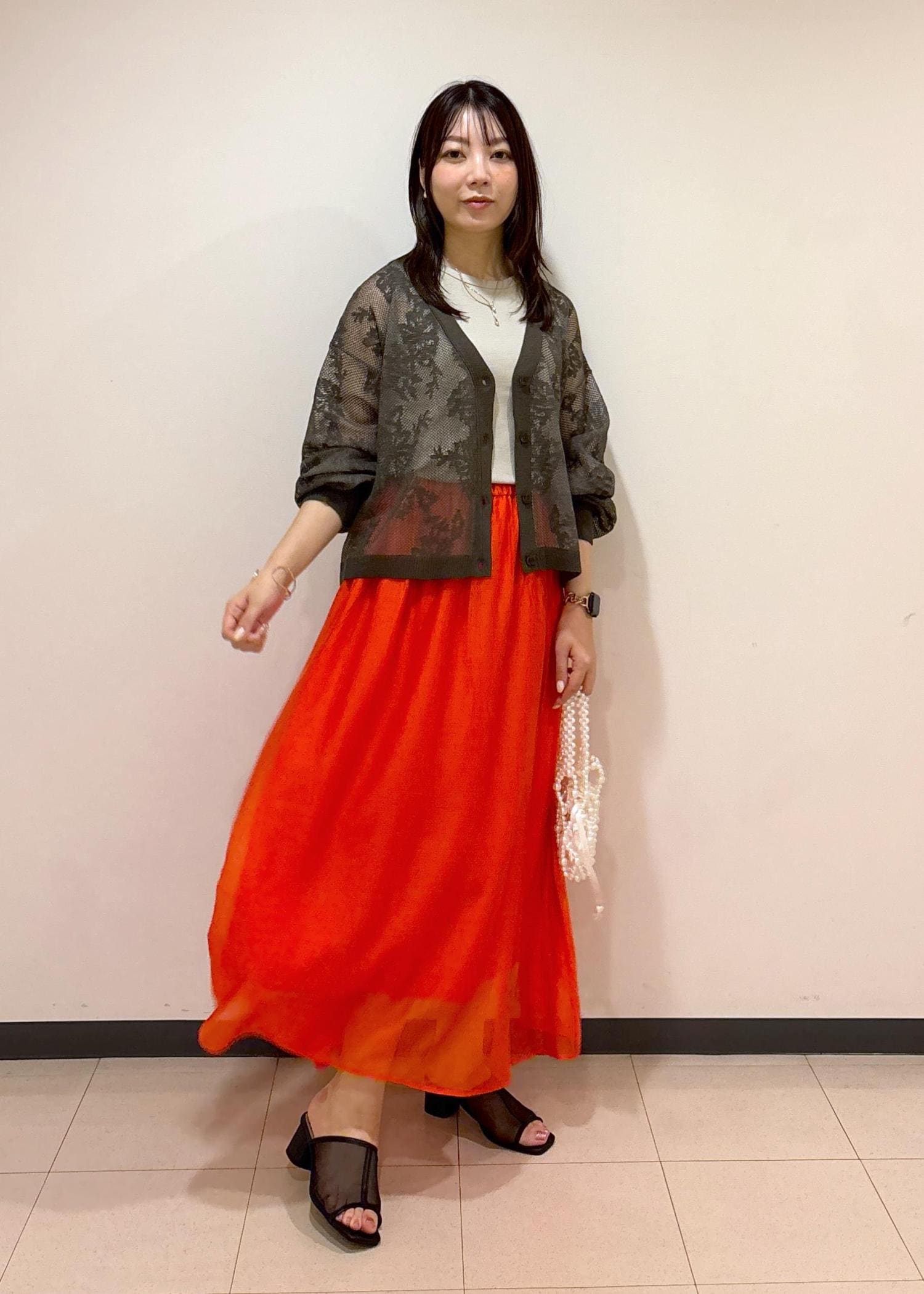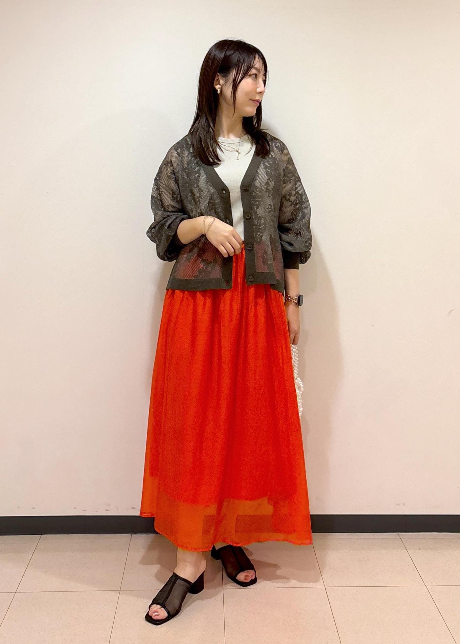 ROPÉ PICNICエアリーシアーギャザーロングスカートオレンジ / 38¥6,490レビュー軽やかな素材で華やかなスカート。