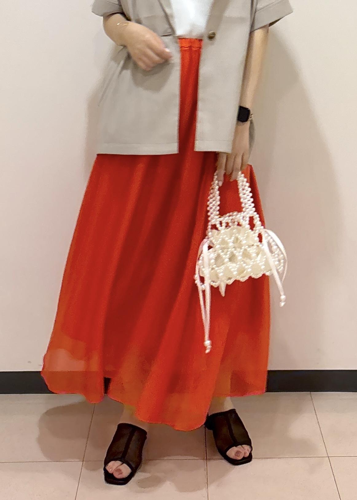 ROPÉ PICNICエアリーシアーギャザーロングスカートオレンジ / 38¥6,490レビュー軽やかな素材で華やかなスカート。