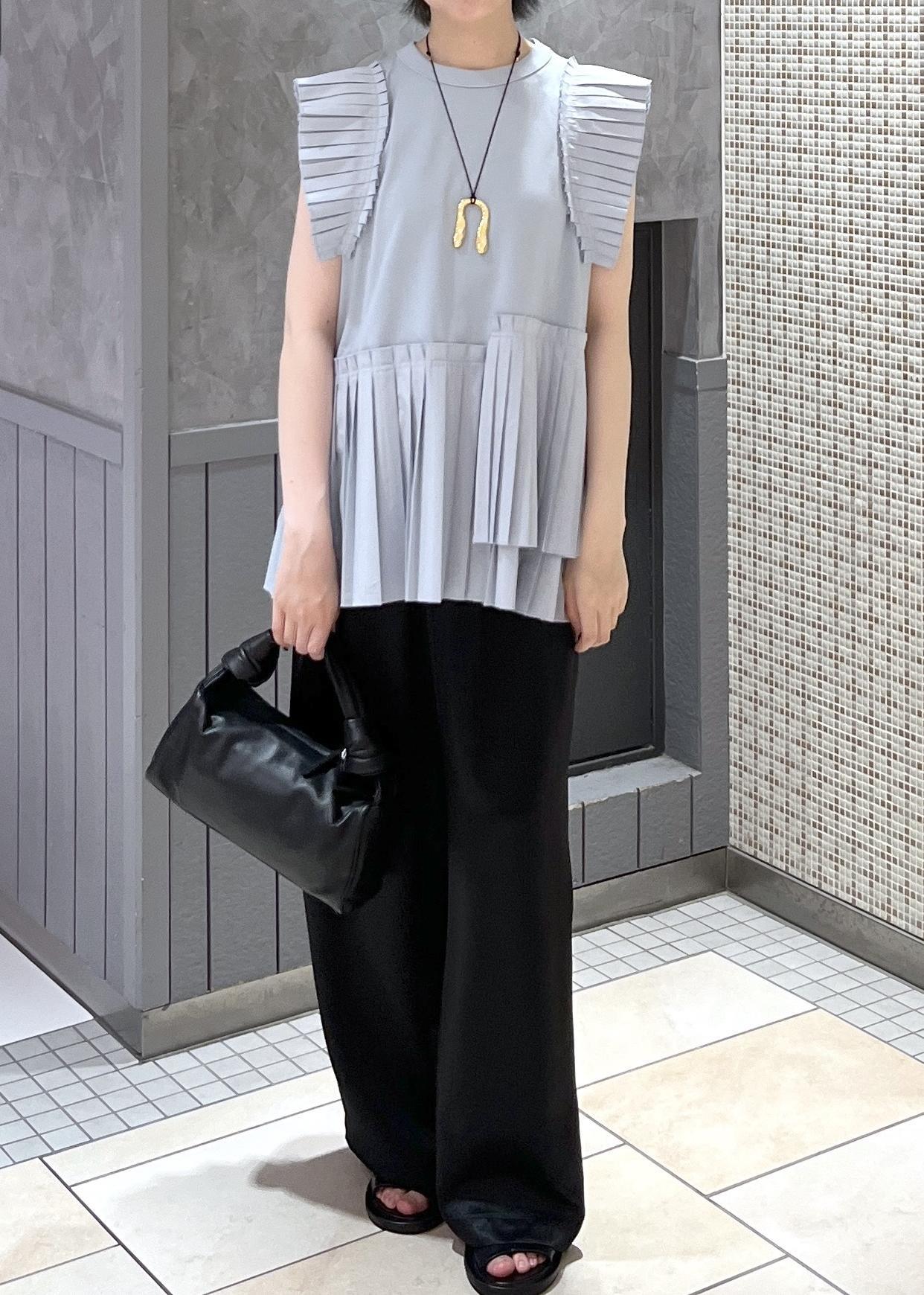 今回はプリーツコンビプルオーバーを使ったコーディネートをご紹介します。パンツや小物は全てブラックで統一させ、甘すぎないバランスを意識しました◎ お気に入りなスタイリングです!