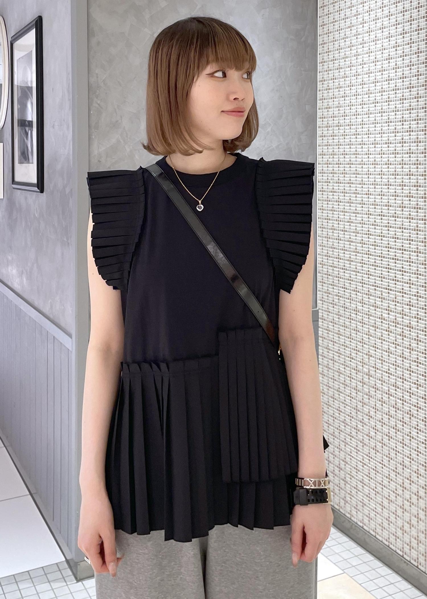 アウトレットADAM ET ROPÉ FEMME【サステナブル】プリーツコンビプルオーバーブラック / F¥5,720レビュー斜めカットで二の腕ラインが細く見えます