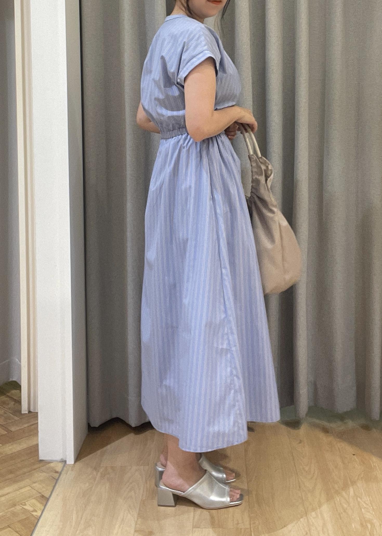 フレンチスリーブで、ウエストもゴムなので一枚でスッキリ着用いただけます♡
