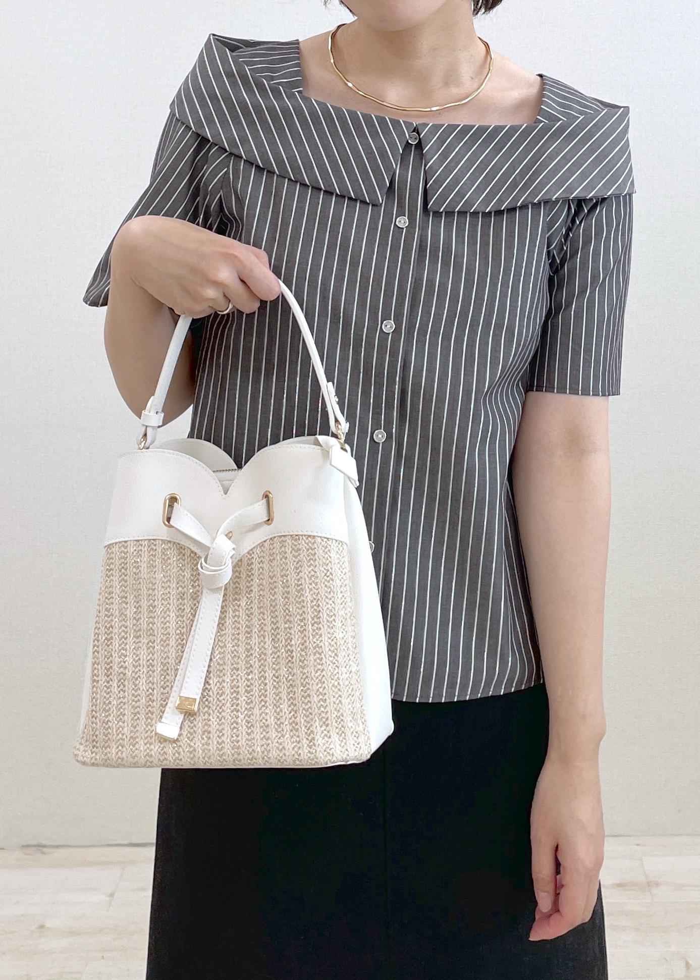 VIS【2WAY】ハートカットカゴバッグホワイト系 / F¥6,919レビュー人気のハートカットバッグの、カゴバック風デザインです。