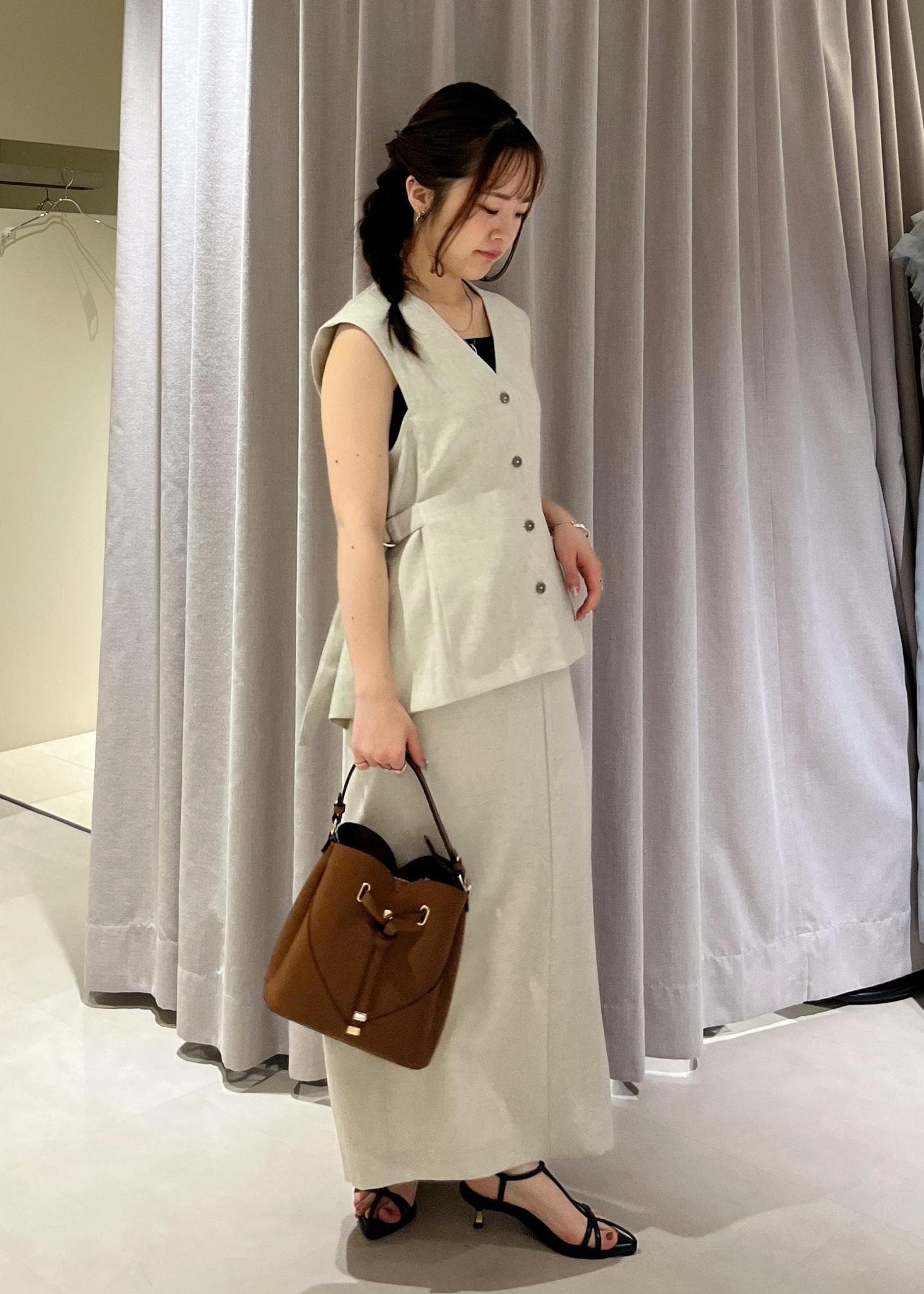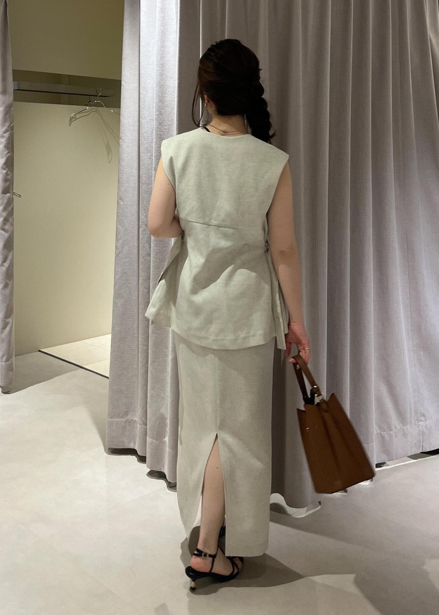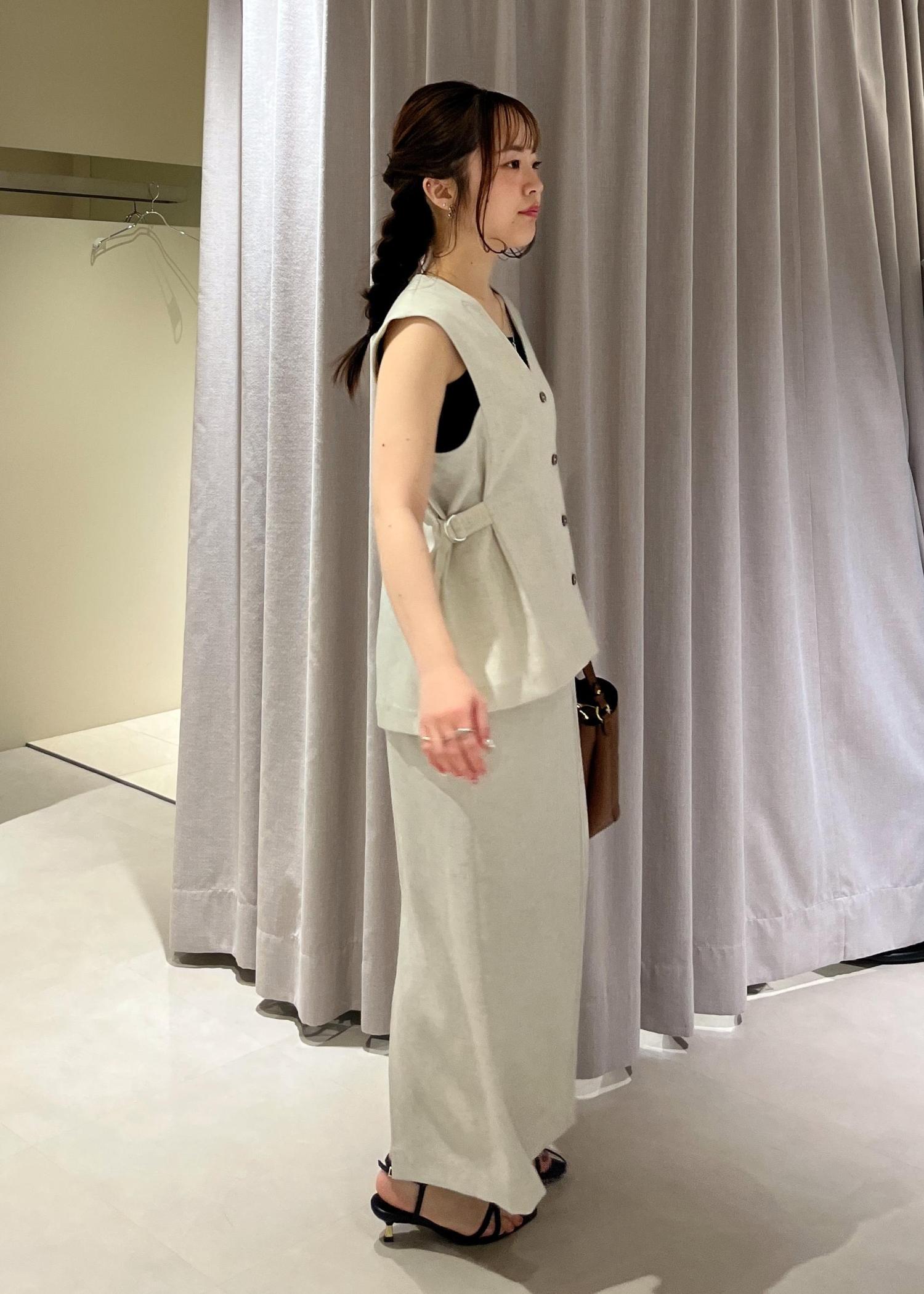 セットアップになるようにスカートのご用意もあって、リネンライクな素材感です!真夏でもさらっと着用していただけます☺︎ -