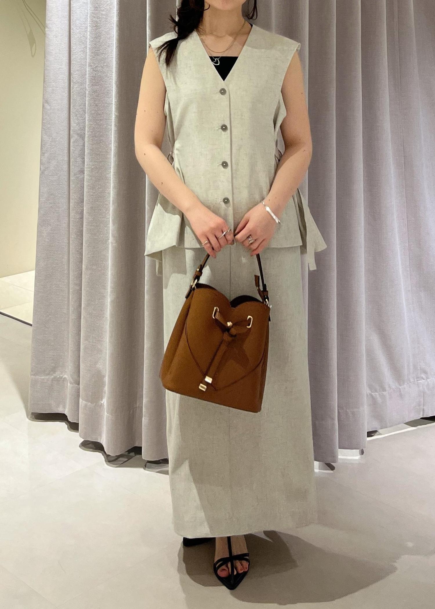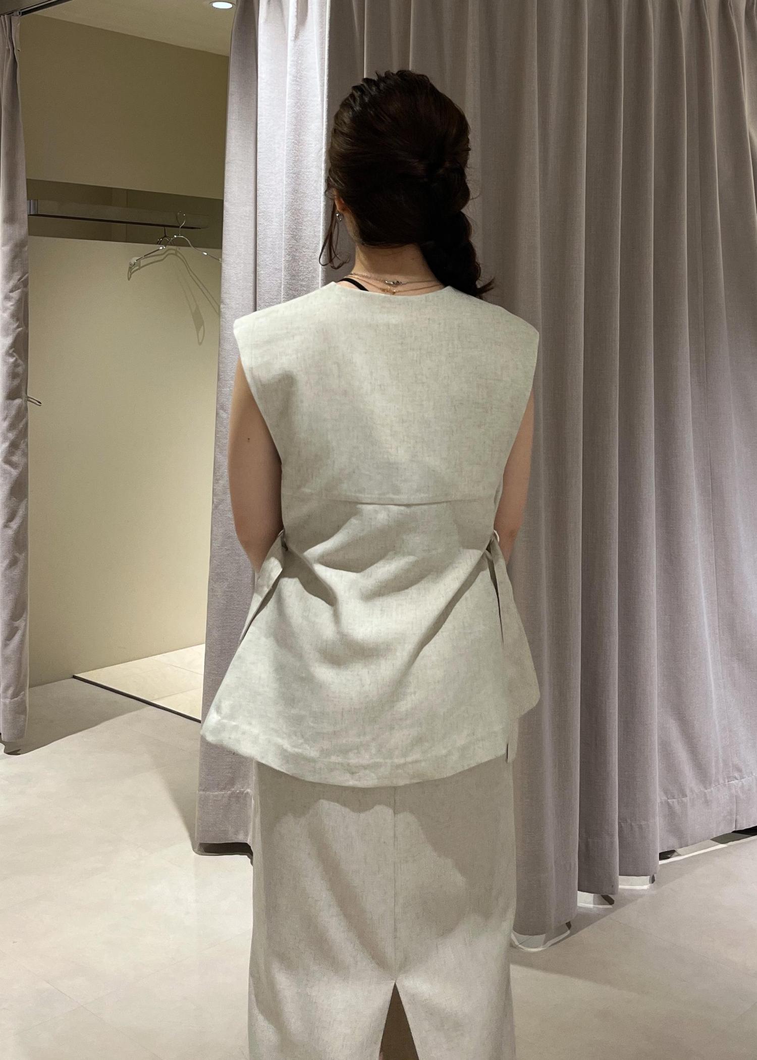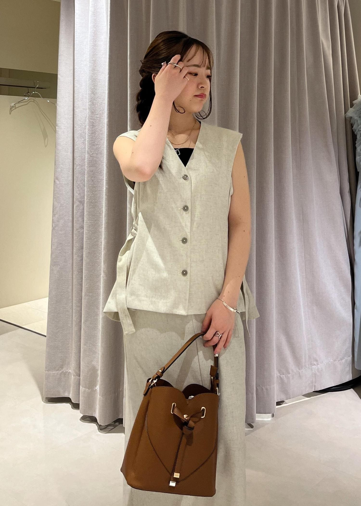 セットアップになるようにスカートのご用意もあって、リネンライクな素材感です!真夏でもさらっと着用していただけます☺︎ -