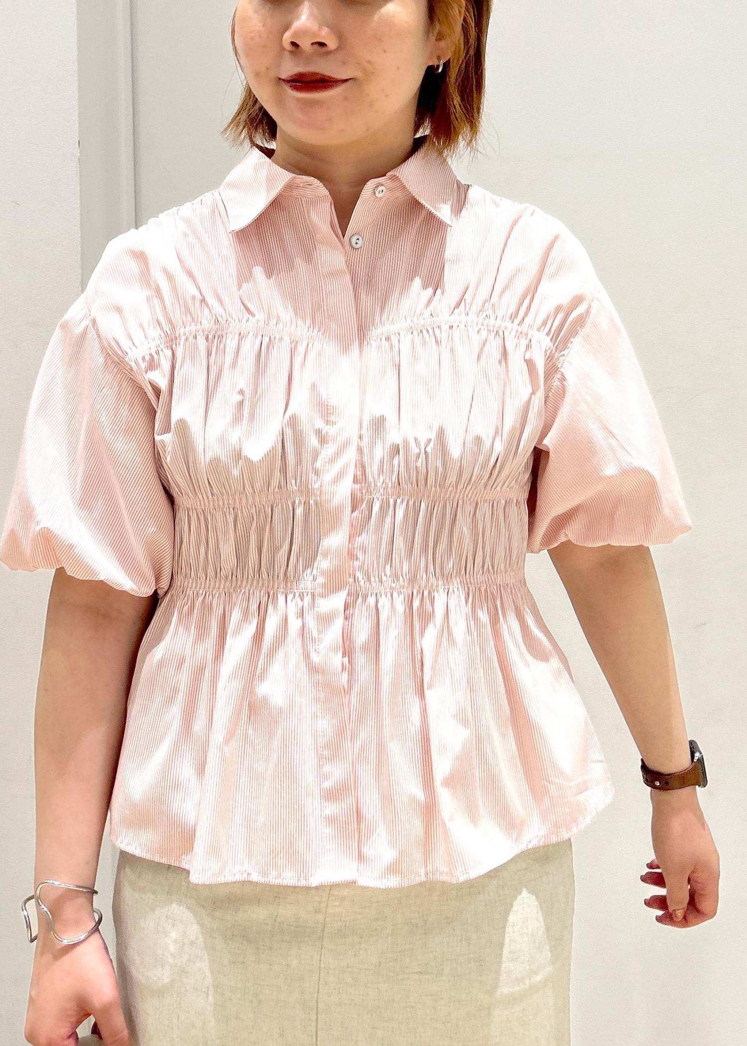 VIS【新色追加】【店頭人気】シャーリングバルーンシャツピンク系 / F¥5,489レビュー大人気シャツの半袖バージョン。