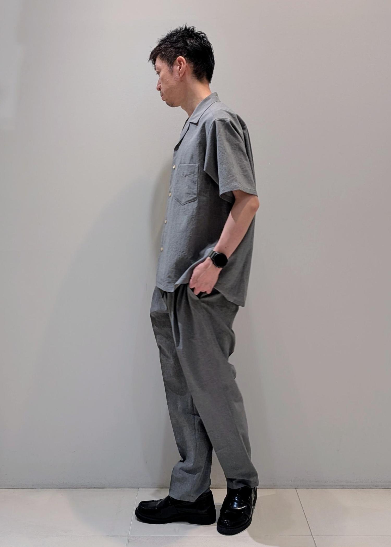 ADAM ET ROPÉ HOMME【RIRANCHA】サマーセットアップ / オープンカラーシャツ & スラックス / イージーケア / 接触冷感 / 吸水速乾グリーン系 / L¥17,930レビューLサイズ着用。トップスは肩が落ちないデザインでパンツ丈は短め。ウエスト調整できる為、ゆったり着たいならワンサイズアップをおすすめします。