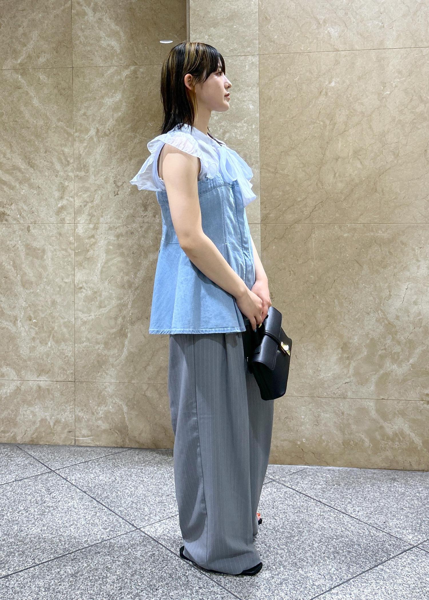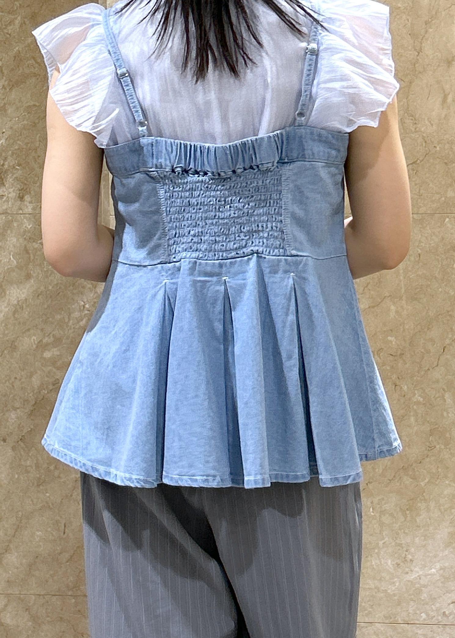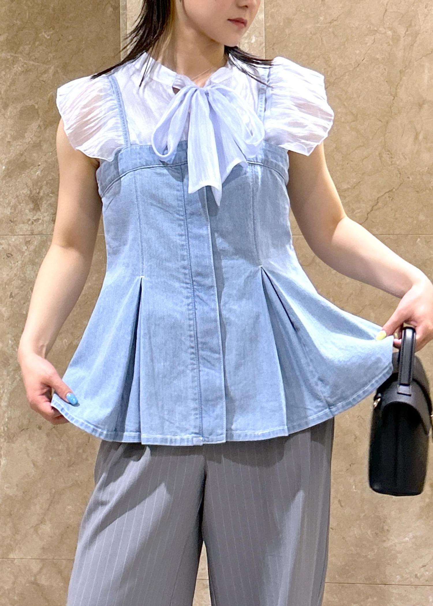 アウトレットVISライトオンスデニムビスチェサックス / F¥2,372レビュー生地は柔らかく、特に窮屈感なくレイヤードできました。