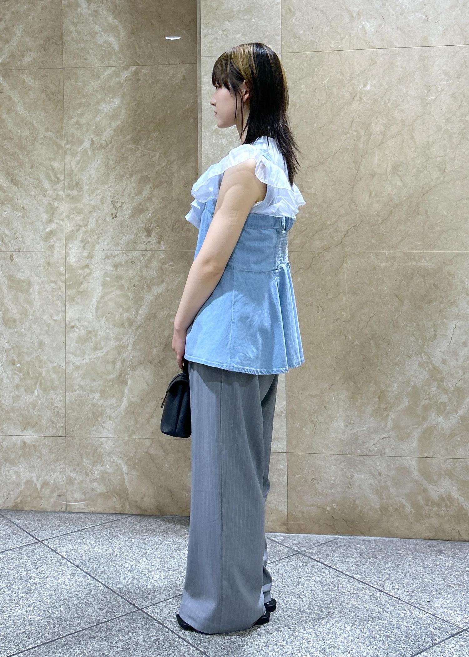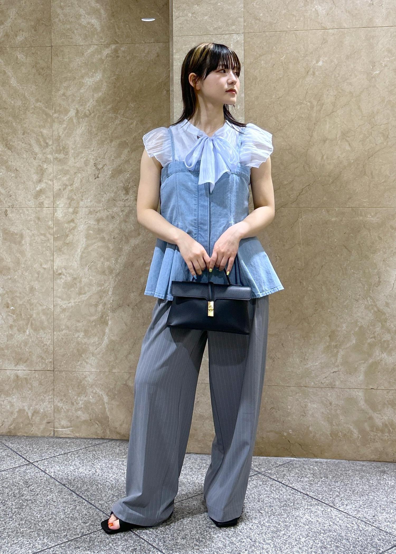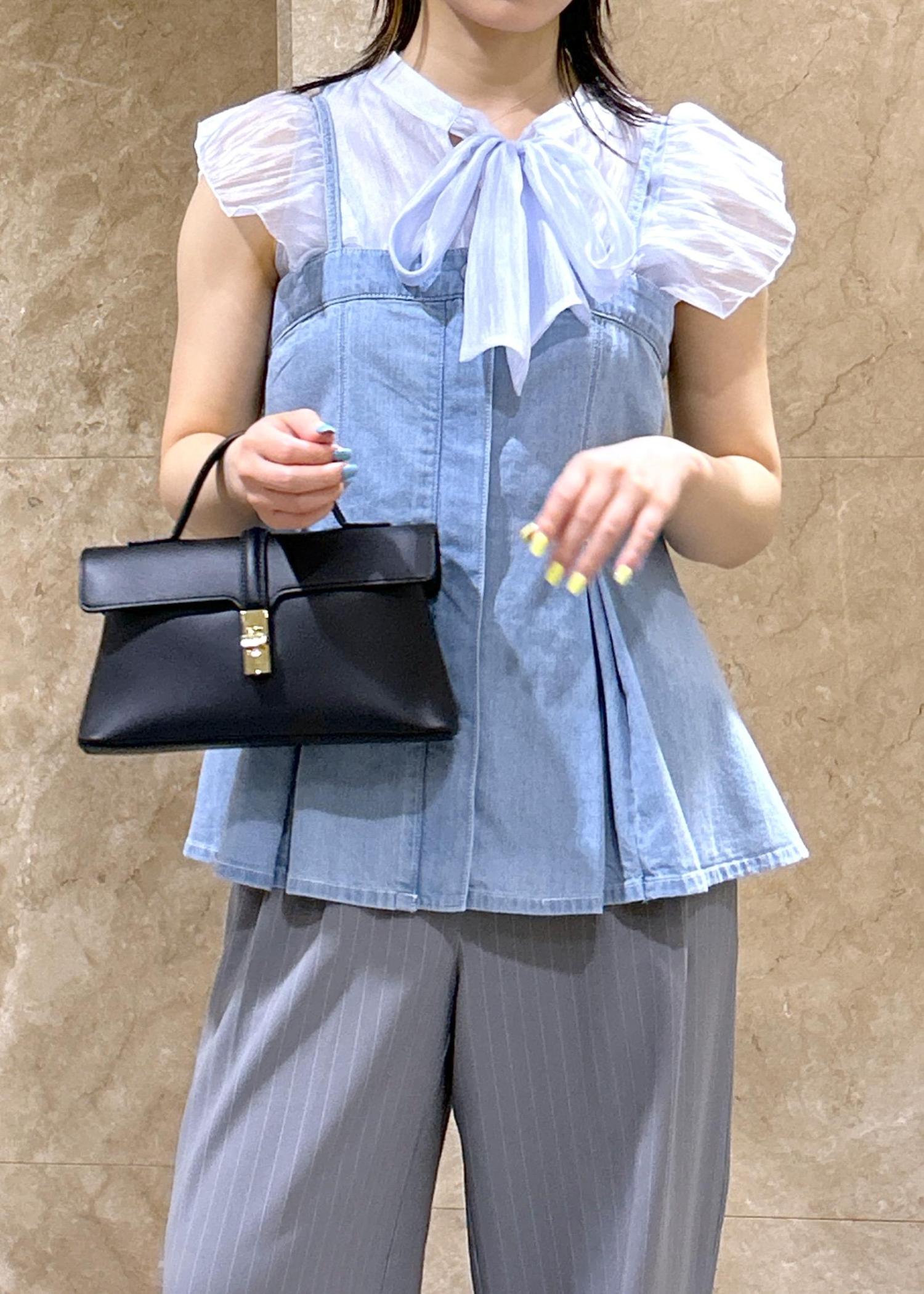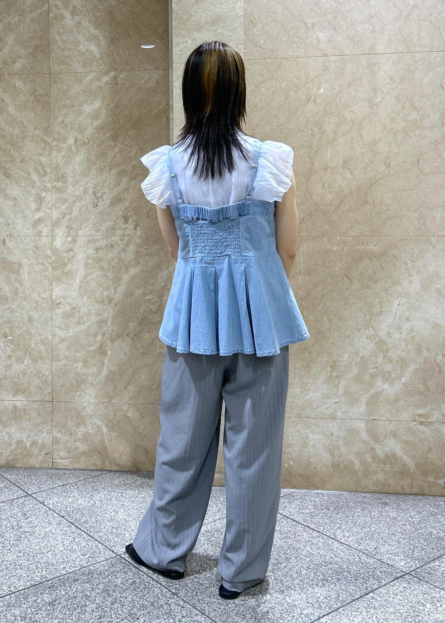 アウトレットVISライトオンスデニムビスチェサックス / F¥2,372レビュー生地は柔らかく、特に窮屈感なくレイヤードできました。