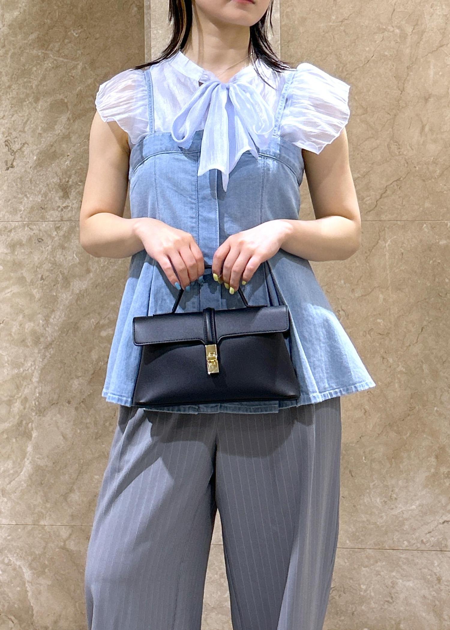 VIS【店頭人気】主役級!華やぎシアーシャイニーボウタイフリルブラウス【前後2WAY】【洗える】サックス / F¥5,489レビューフリルが肩までカバーしてくれるので気になる二の腕も安心で、軽い着心地◎