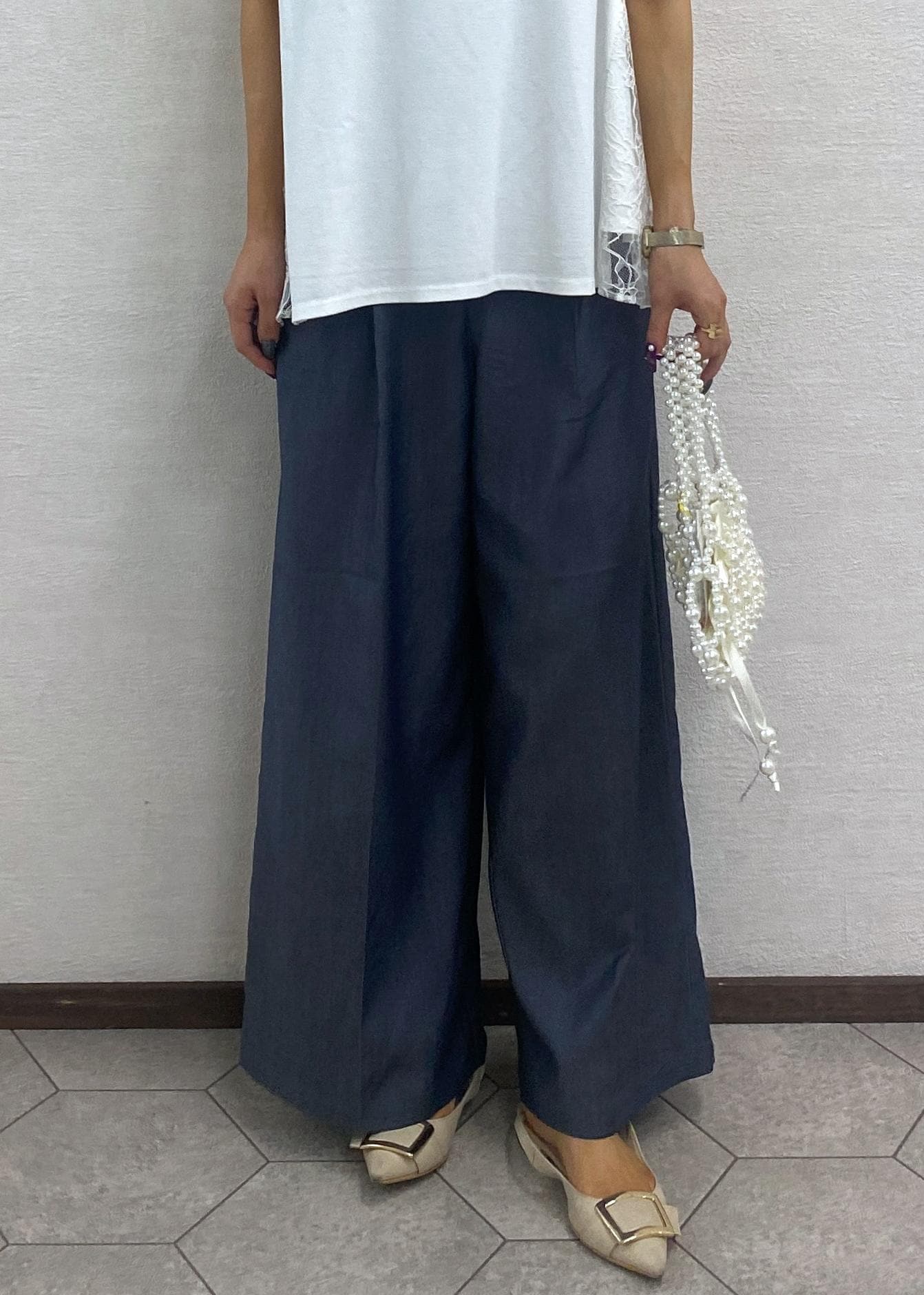 ROPÉ PICNICテンセルシャンブレータックワイドスラックス/通勤対応ネイビー / 36¥6,490レビュー肌離れが良くサラッとした生地感です。
